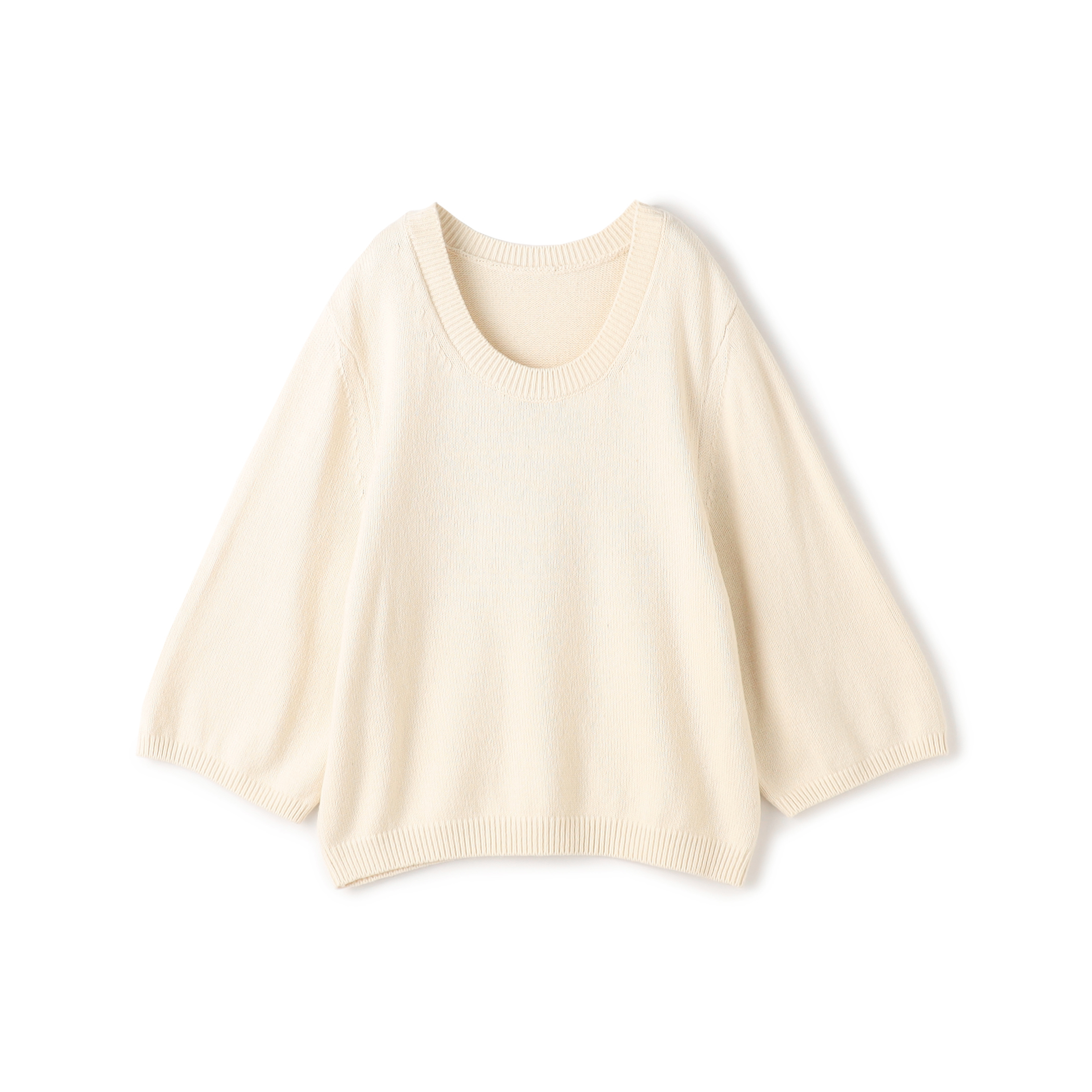 コットンカシミヤ オーバルネックプルオーバーは、前後どちらでも着用できるデザインなので、気分や着こなしに合わせてネックラインを変えていただけます。