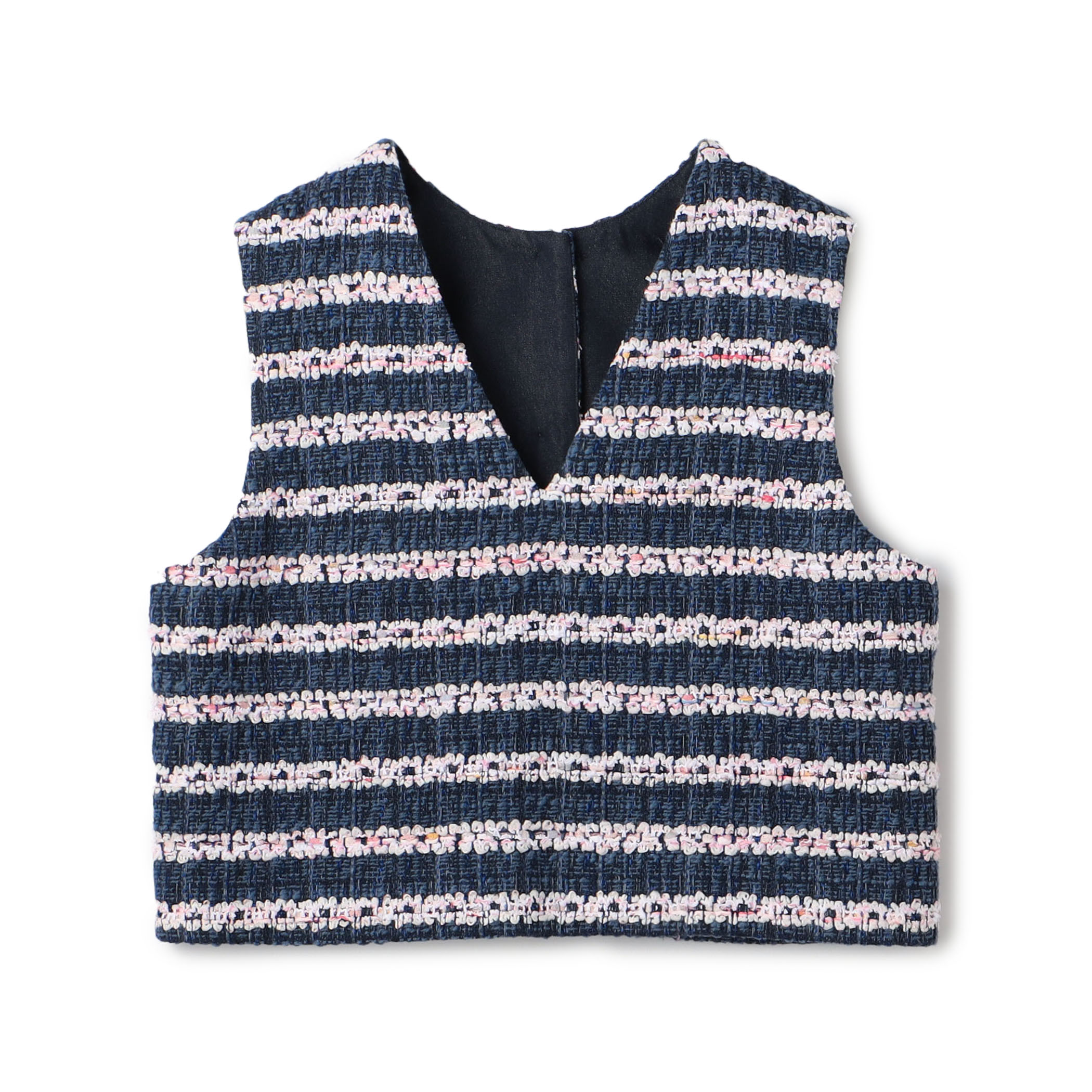 〈TOMORROWLANDcollection〉フルールボーダー フロンタブルジレは着丈が短いため小柄な方も合わせやすいです。