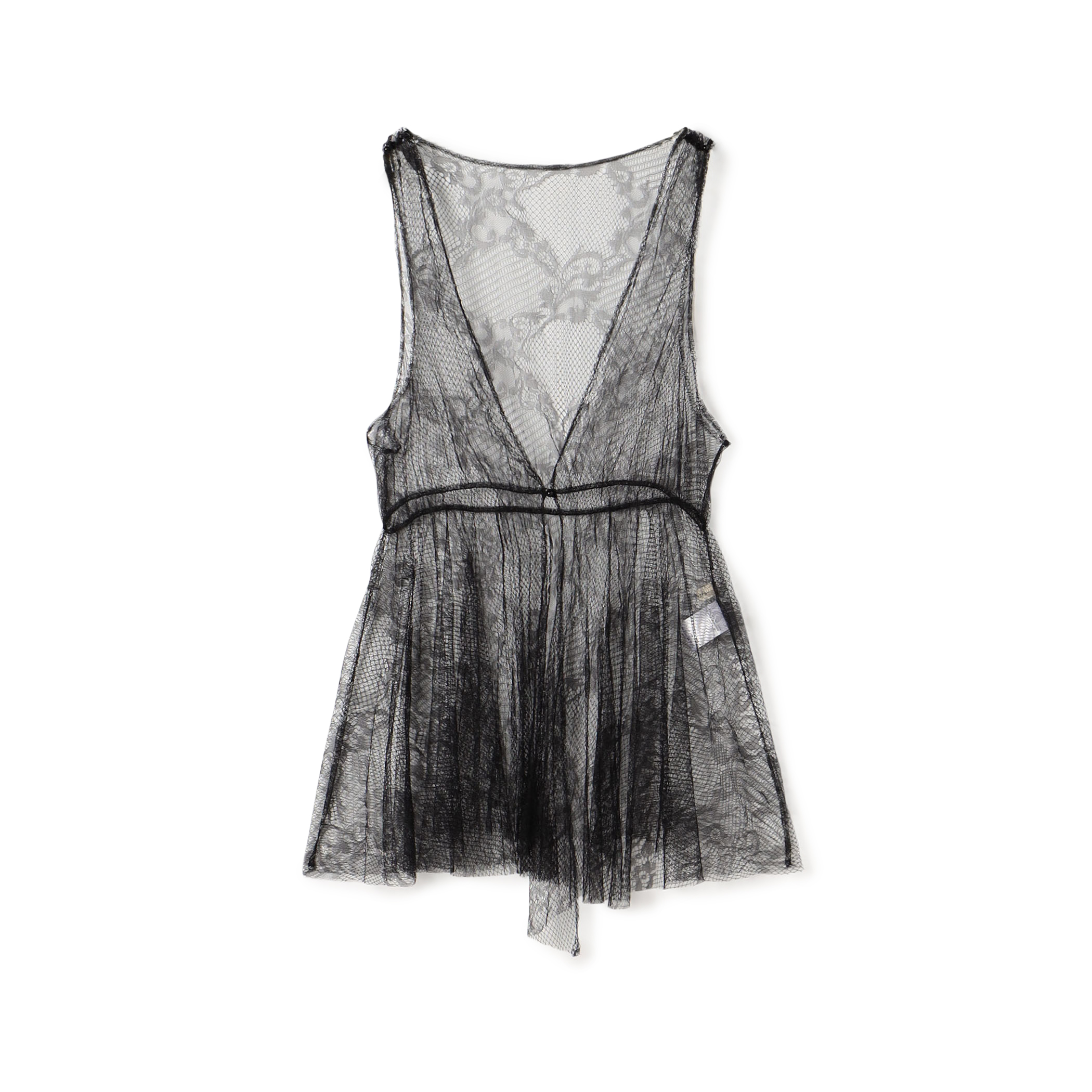〈DES PRÉS〉シルクラミーブルゾンはワッシャー加工がされているので、ナチュラルさと艶がありデイリーに着用できます。繊細なレースのインナーをクロップド丈のブルゾンにレイヤードしてアクセントに。