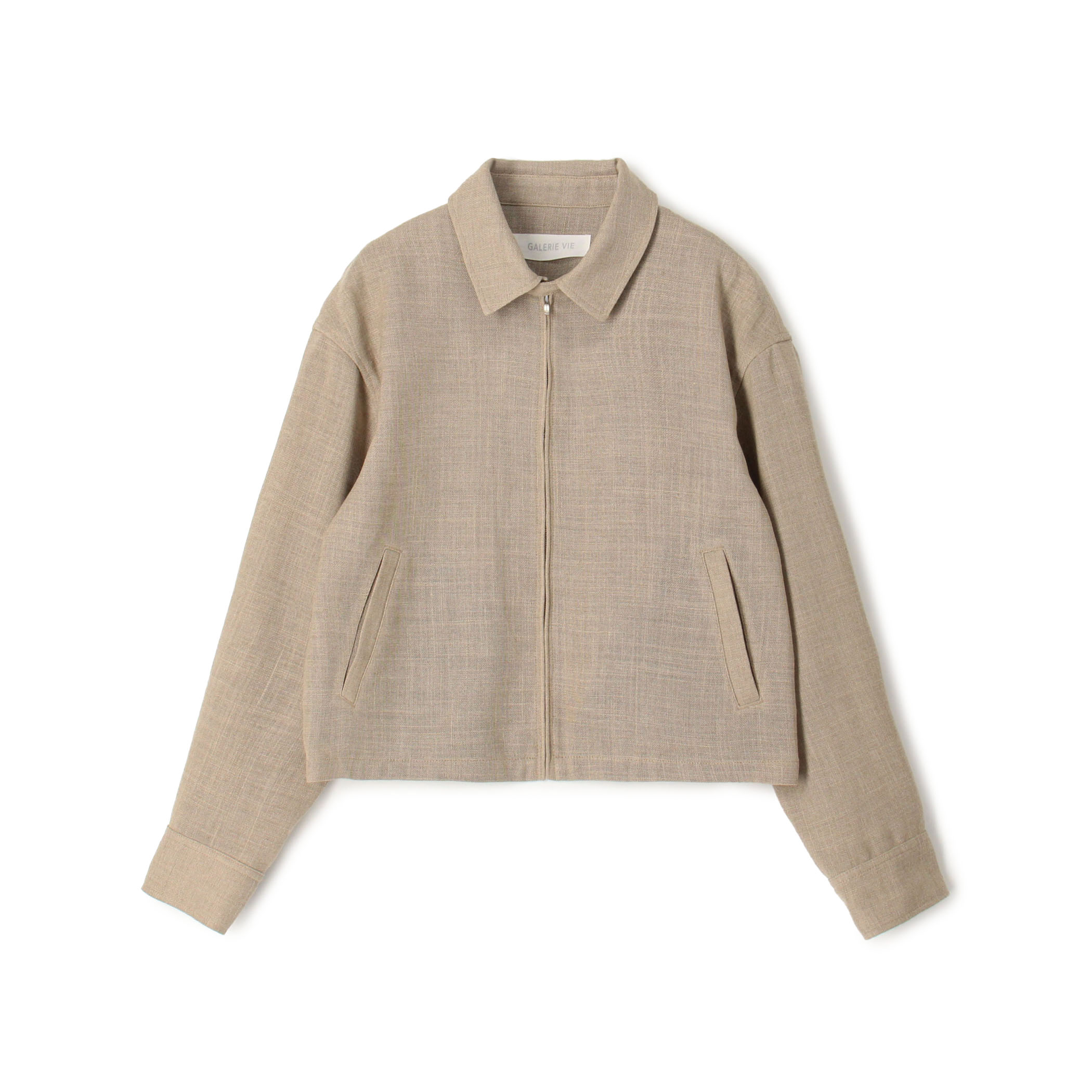 リネンのような涼しげでナチュラルな風合いをポリエステル糸で表現したリネンテクスチャー ジップアップジャケット。