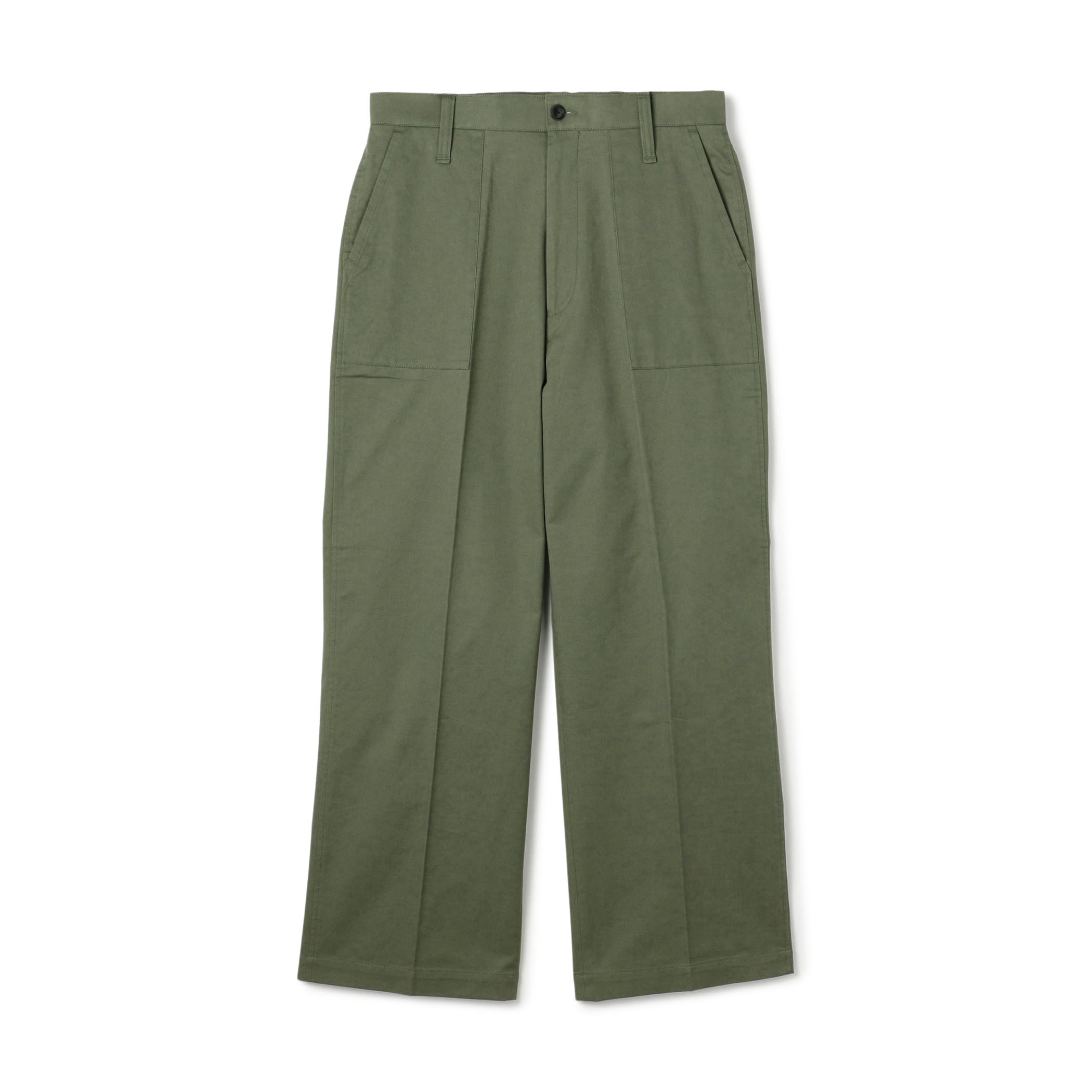 発色の強いリネン100%のグリーンをアクセントとして持ってくることで、スタイリング全体を春らしくしています。