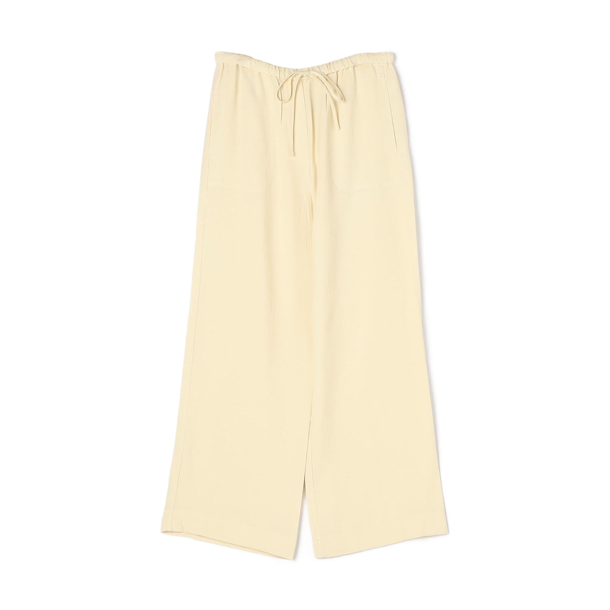 イージーパンツでリラックス感を、小物はシャープで綺麗めな物を合わせました。