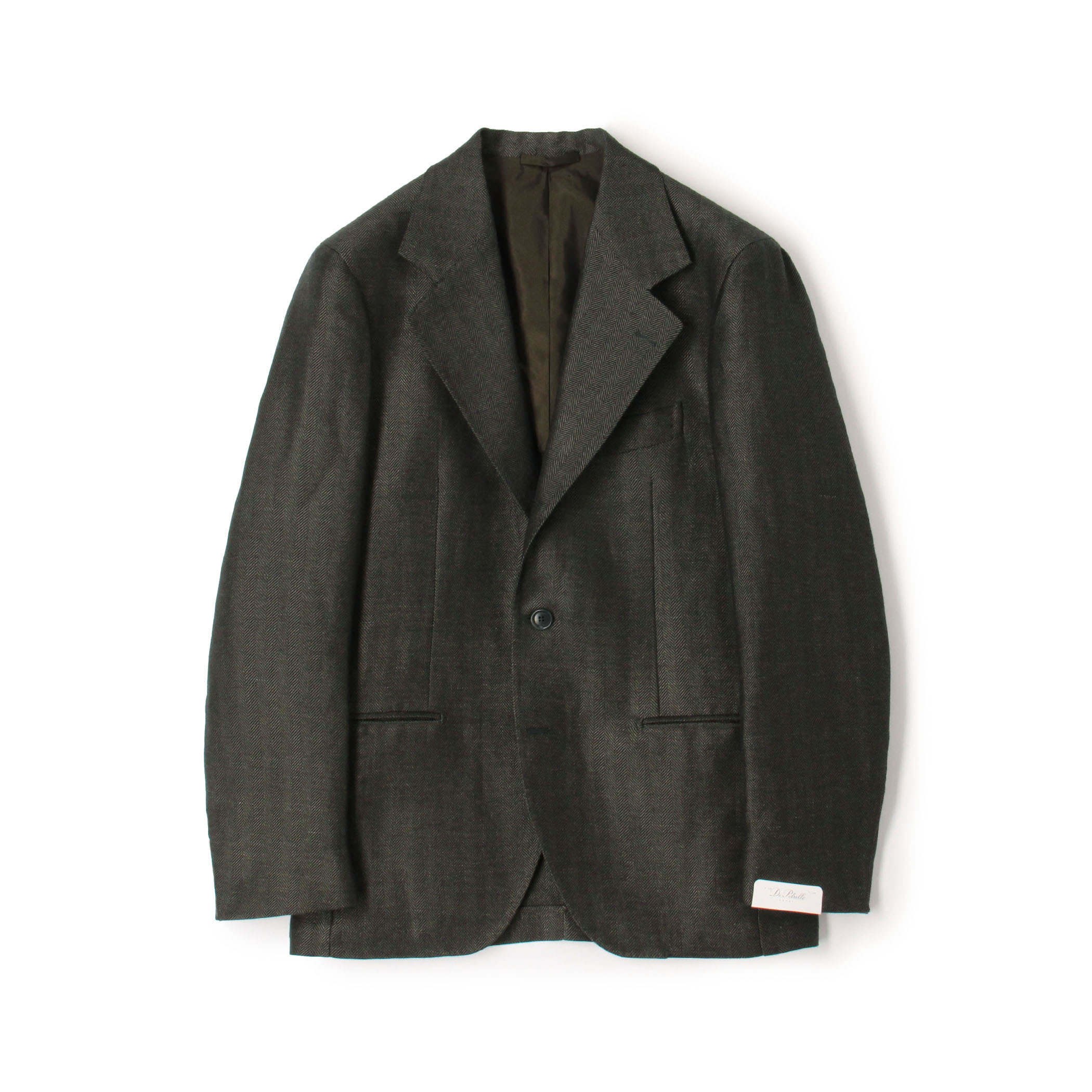 ナポリのファクトリーブランド〈De Petrillo〉によるハンドメイドを多く用いた軽い着心地、人体の曲線に馴染む丸みのある仕立てが特徴の別注ジャケット。