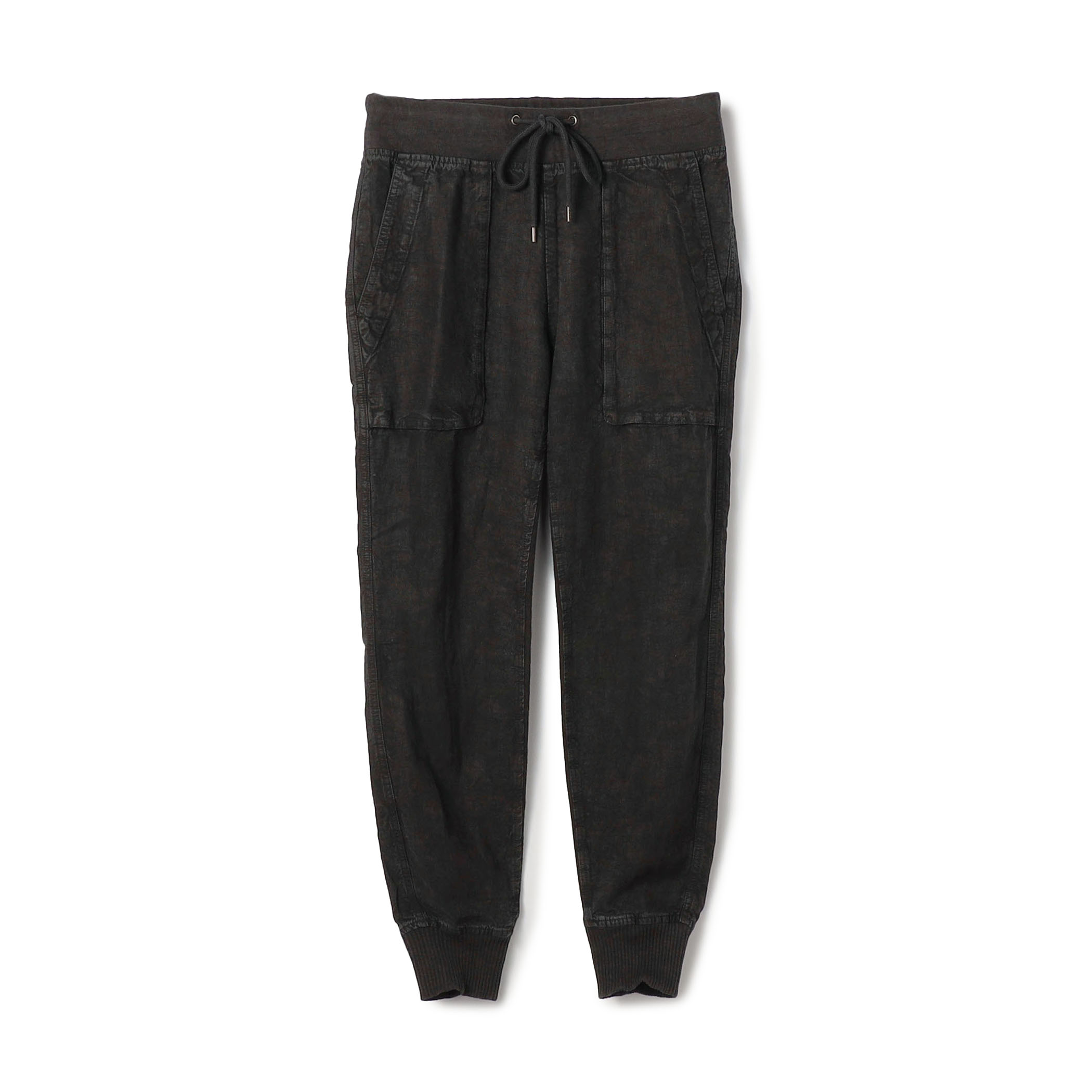 リネン 裾リブパンツは、ヴィンテージライクな風合いと伸縮性のあるウエストバンドで快適さを追求した一着です。