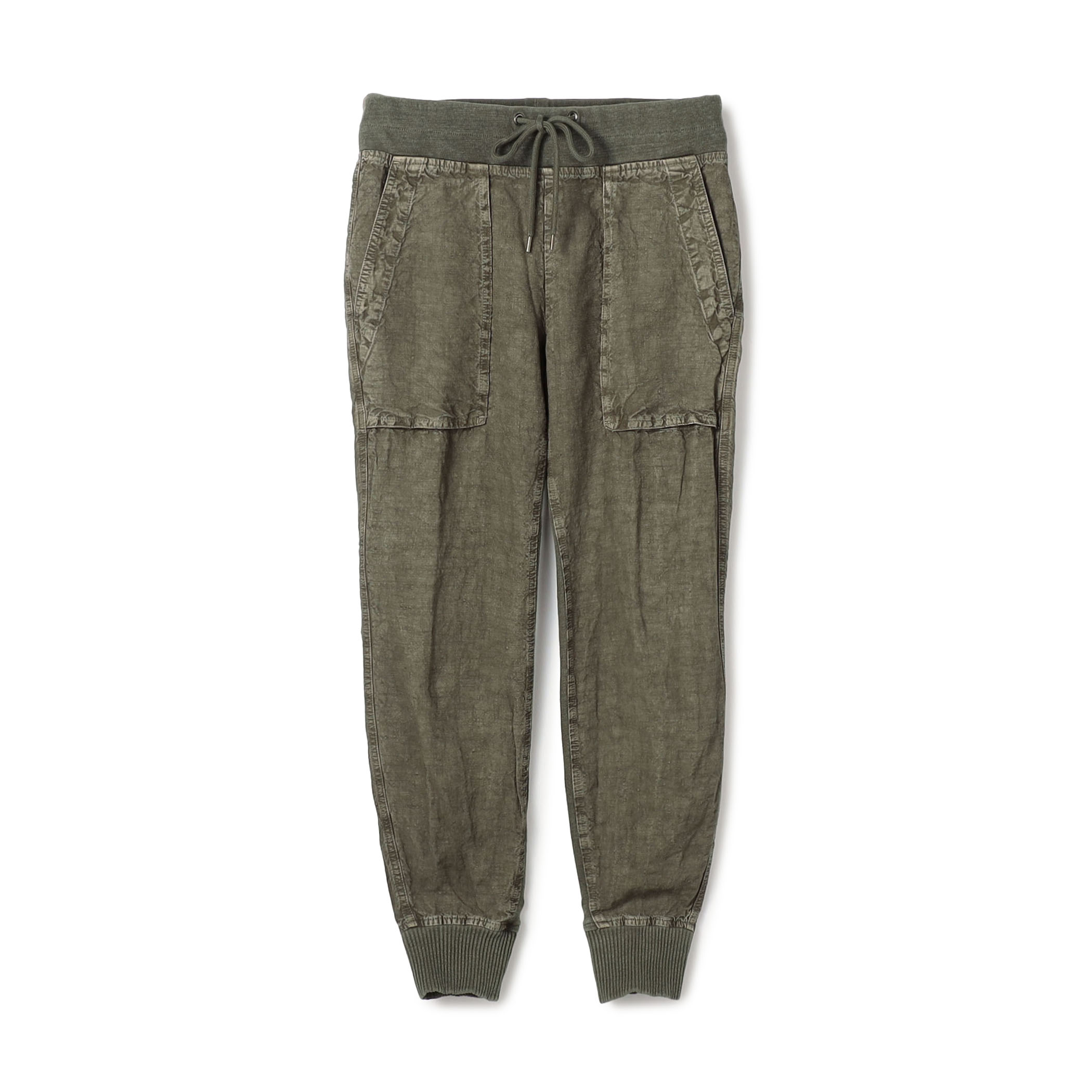 リネン裾リブパンツは、イタリア産のリネン素材を使用し、ガーメントダイ加工によるヴィンテージライクな表情が魅力です。
