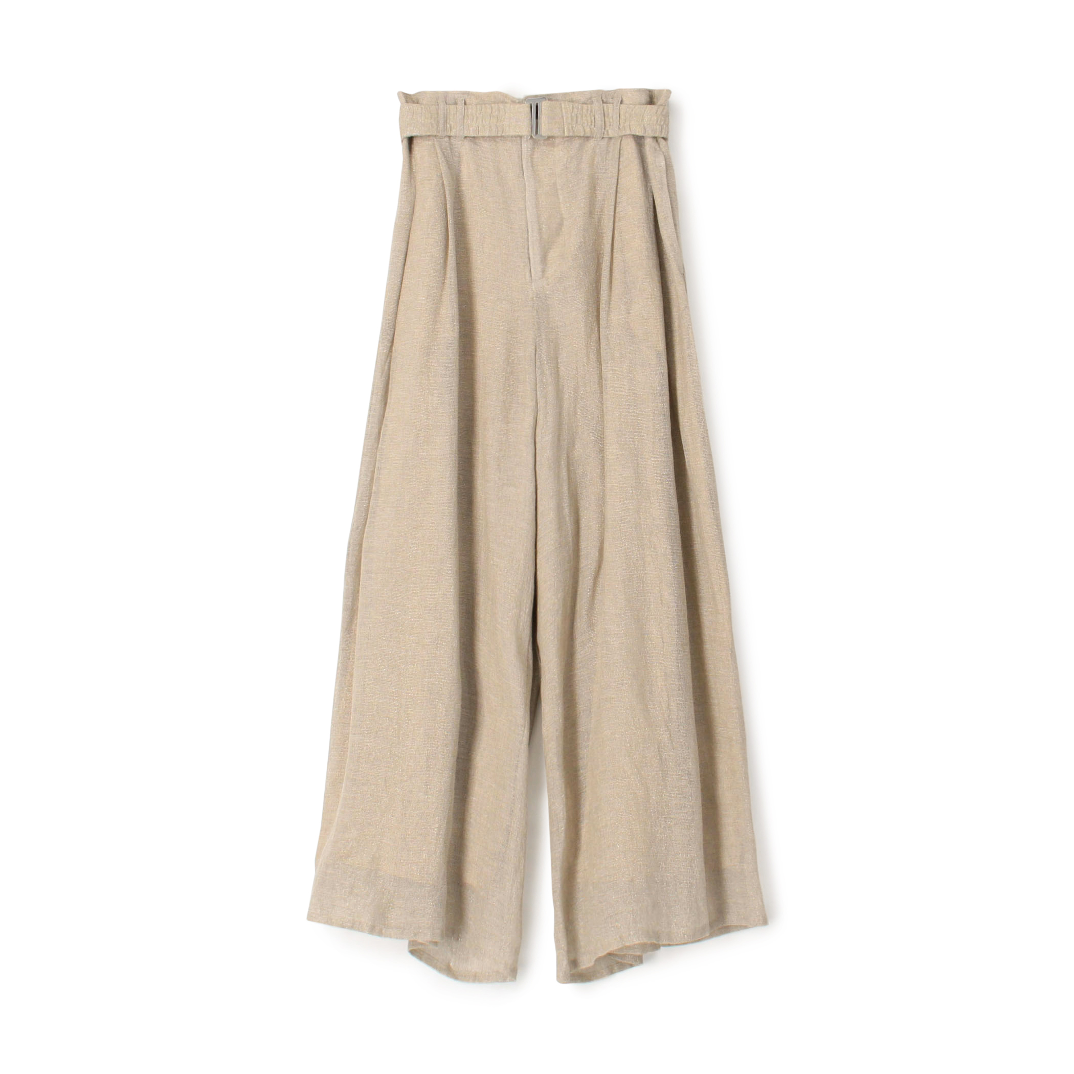 スカートのような分量感のワイドパンツはとても軽いエアリーなリネン素材で夏のスタイルを華やかにしてくれます。