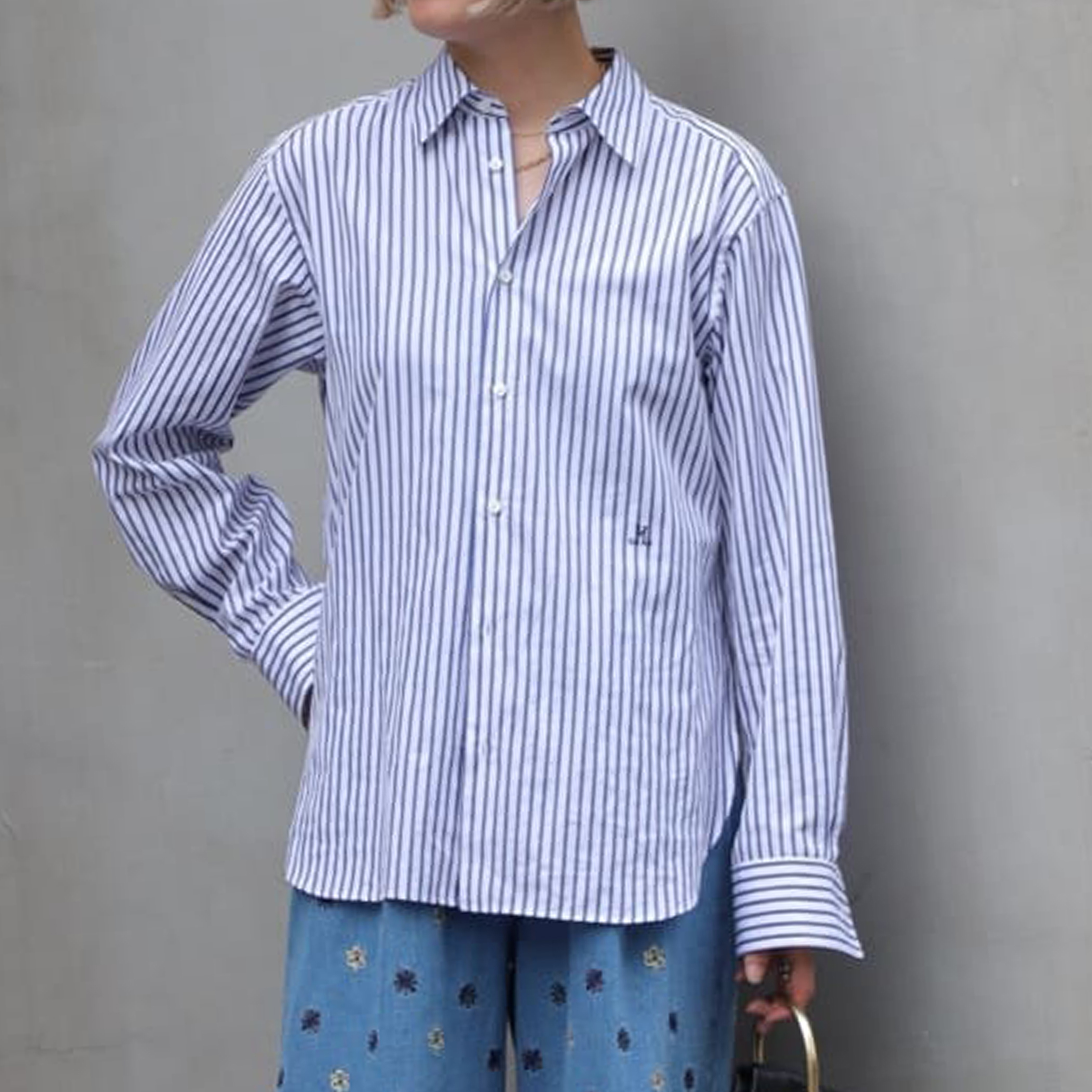 今回は柄のシャツ・デニムを合わせ、ベーシックながら遊び心のあるスタイリングにしました。