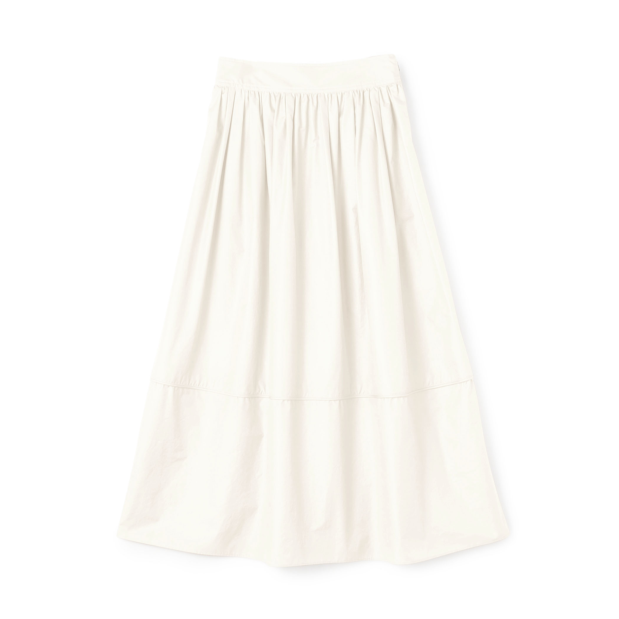 〈MACPHEE〉クリスピータフタ ギャザーマキシスカートは、どのトップスと合わせても格好が決まる万能アイテム。