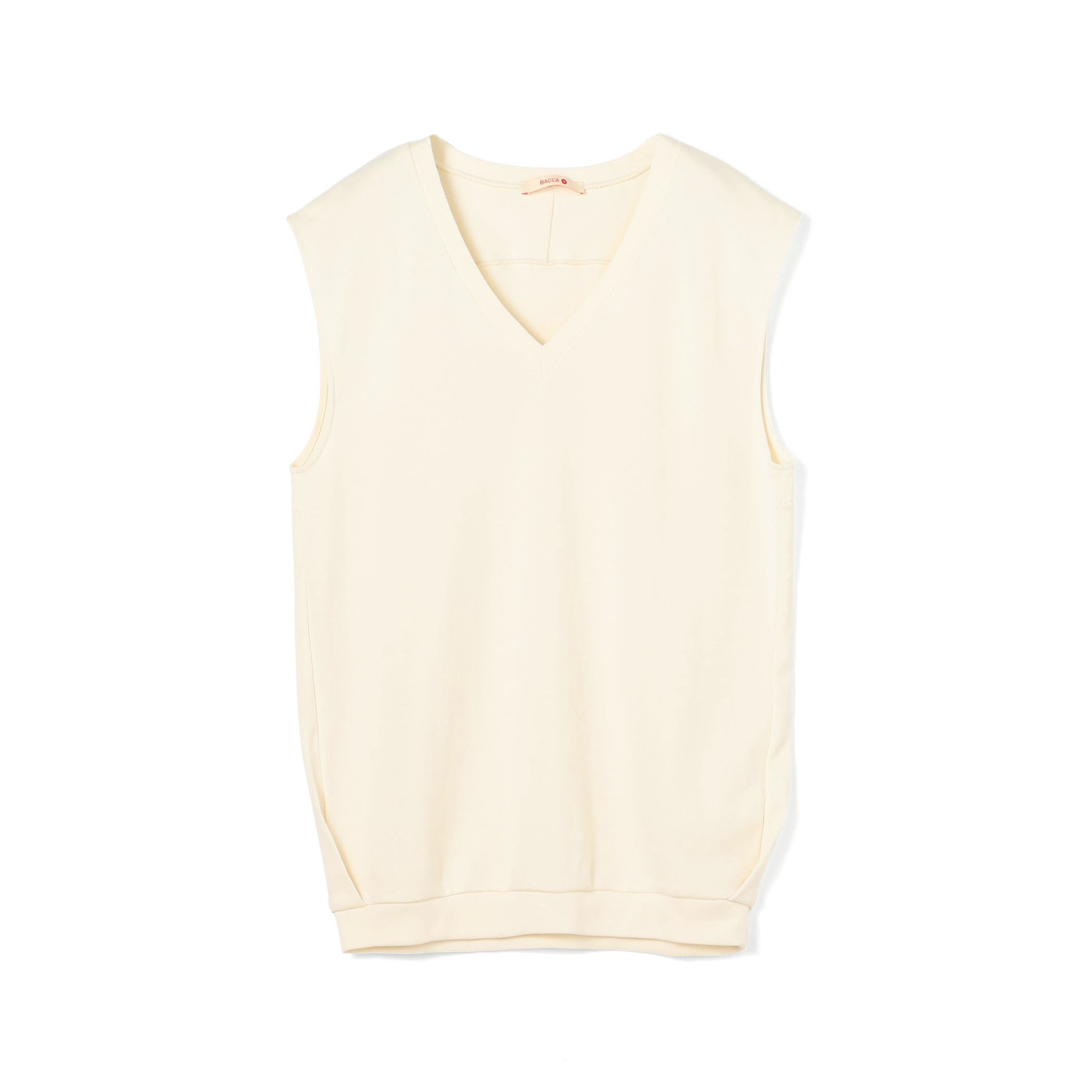 スーピマコットンのVネックベストはゆったりとしたサイズ感でこれからの夏に涼しく着ていただけます。透け感も気になりません。