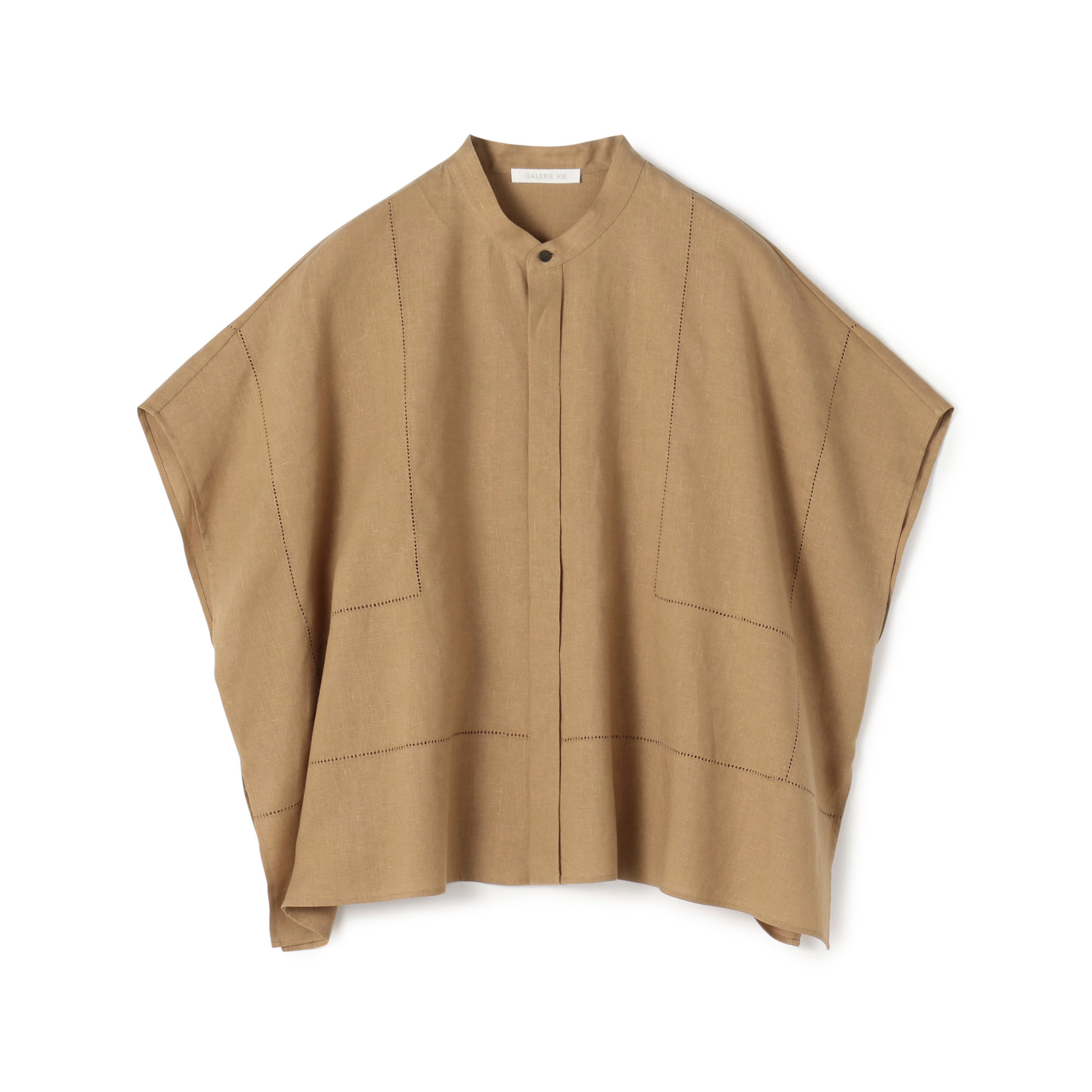 〈フレンチリネンスタンドカラーシャツ〉