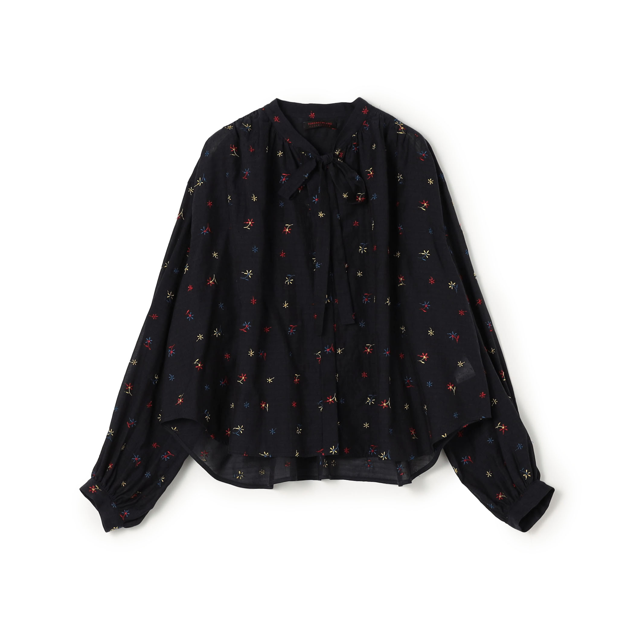 〈TOMORROWLAND collection〉フルーロンエンブロイダリー ボウタイブラウスは華やかさもありつつ上品な印象の刺繍が秋の落ち着いたトーンに刺し柄となるアイテムです。