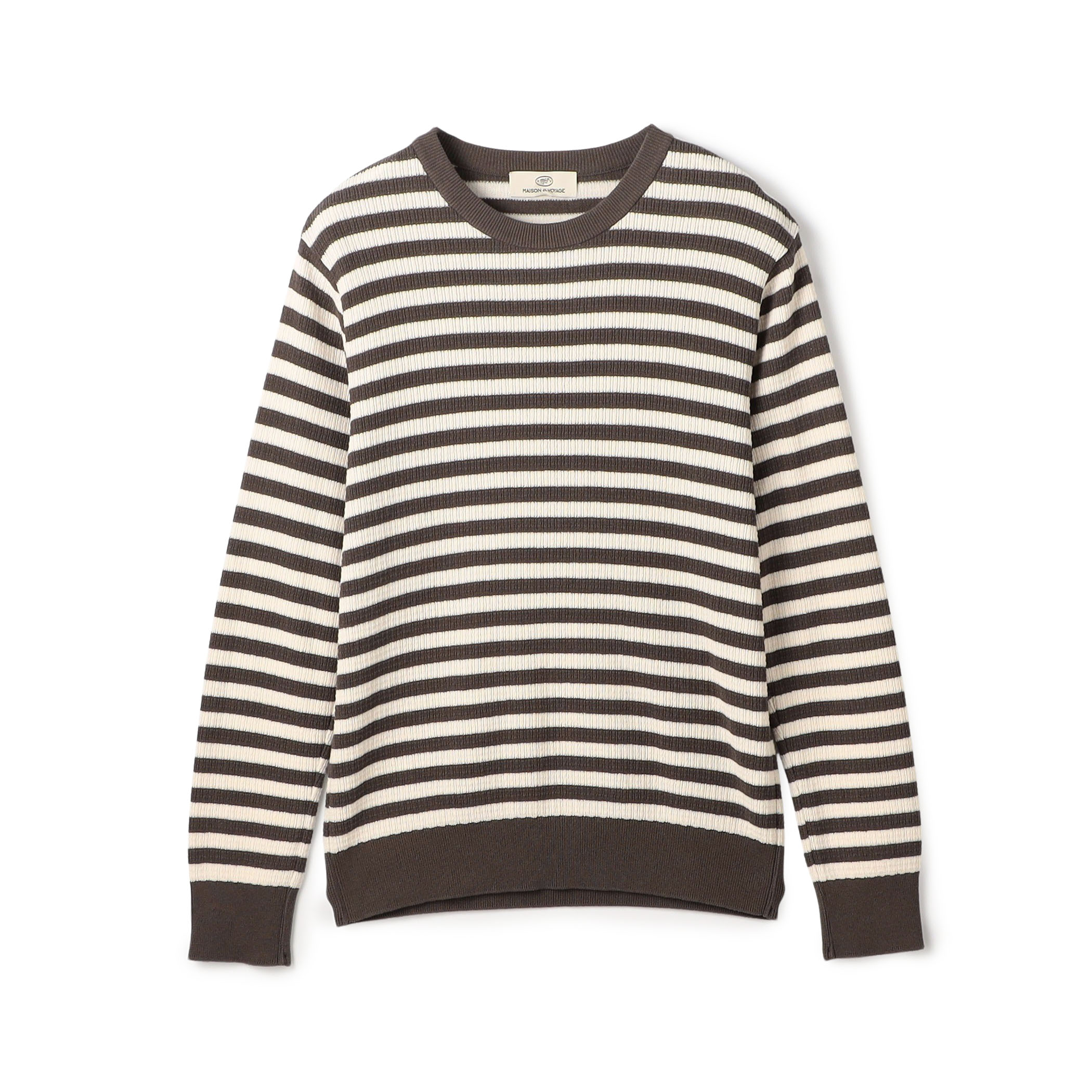 インナーに着ているボーダーの配色を定番の白×紺ではなく白×カーキにすることで、秋らしい色合わせにしています。肌触りも良く長いシーズン着用で着る生地なので、おすすめです!