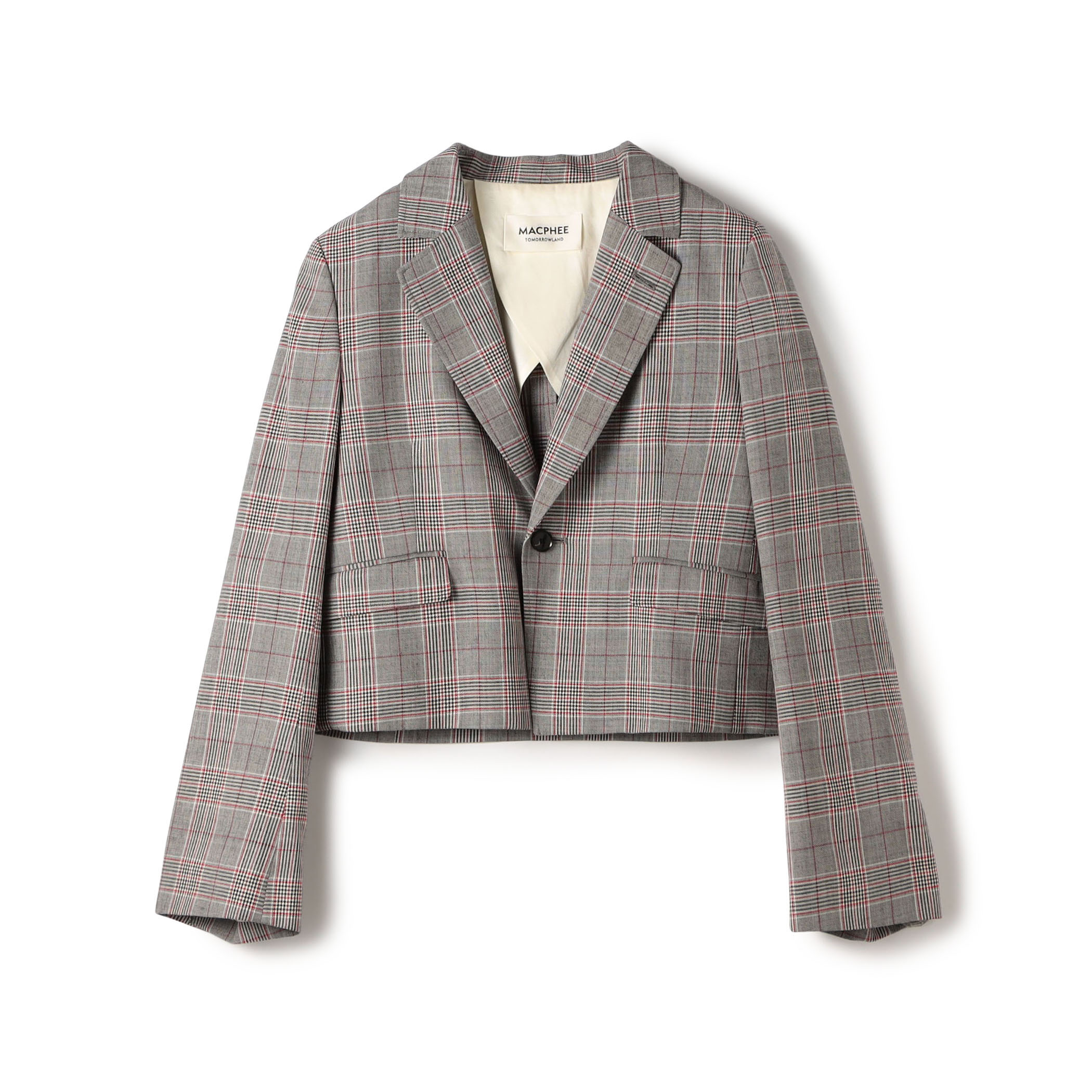 レッド×グレーのグレンチェックがキュートなショート丈ジャケット。