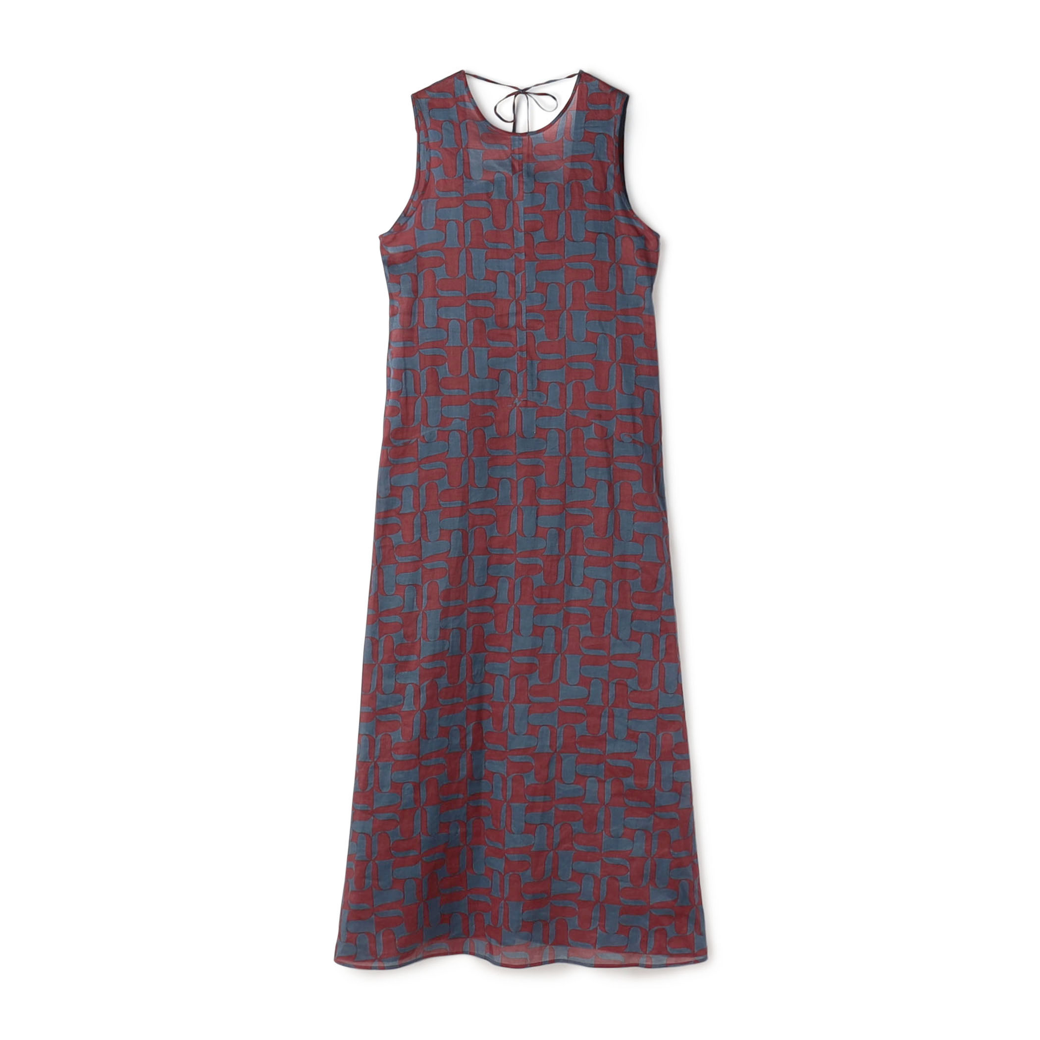 コットンオーガンジーワンピースは、プリントが秋の訪れを感じさせ、カジュアルさの中にエレガントなシルエットを演出。