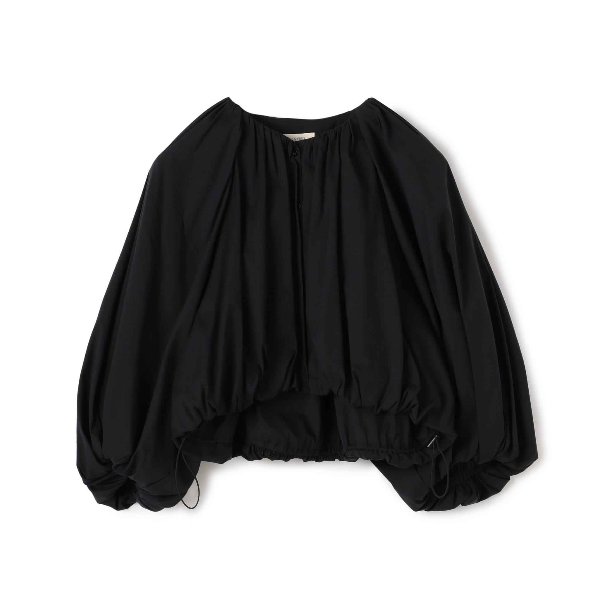 たっぷりとしたギャザーが襟元から入り、裾はバルーン仕上げにした分量感のあるフォルムが特徴的です。