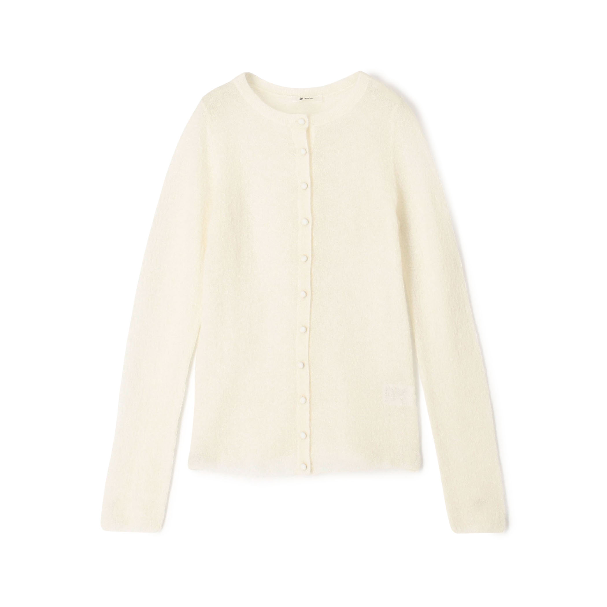 〈Edition〉ポロニットに同色のカーディガンをレイヤードし、シックでカジュアルな雰囲気に仕上げました。