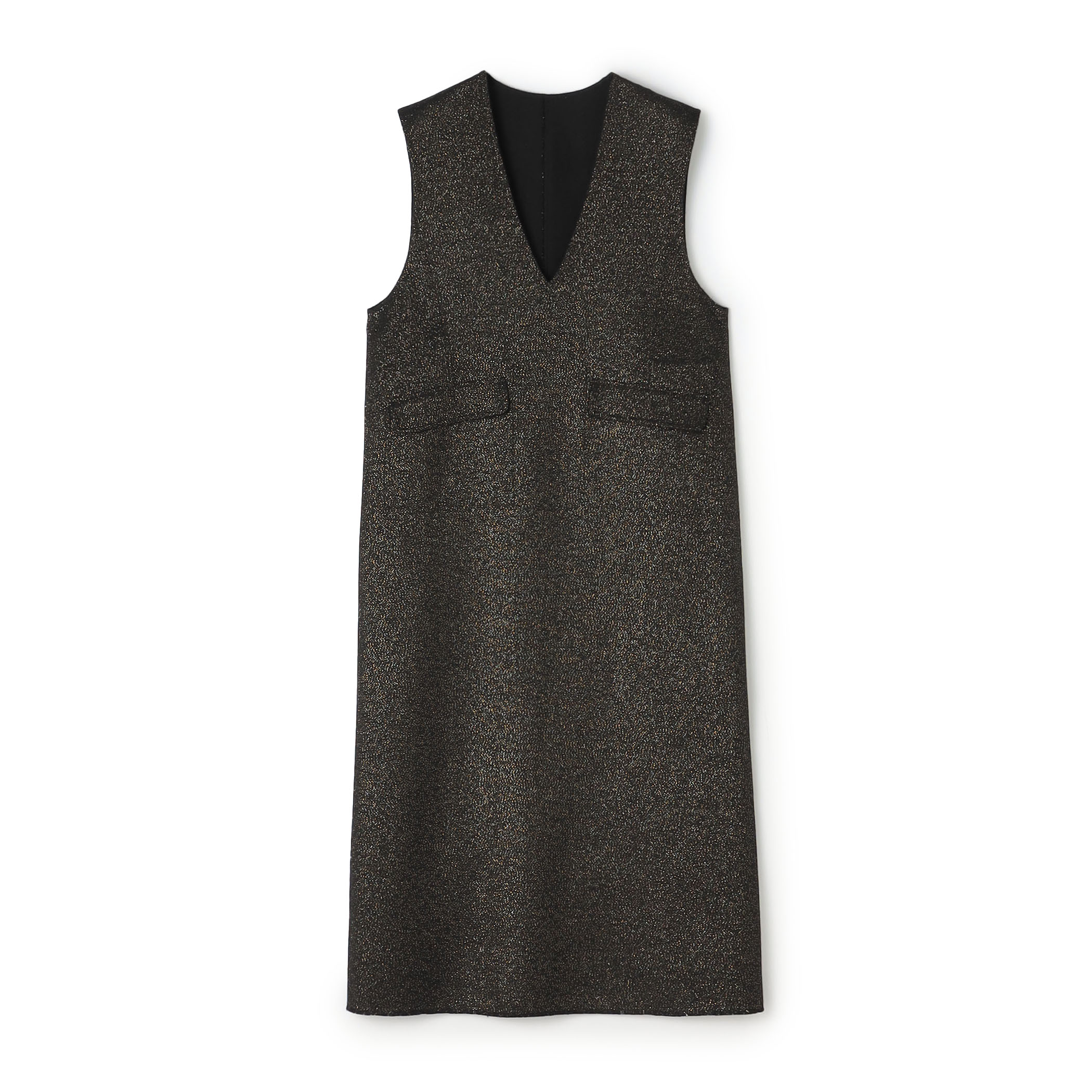 上品なラメの表情が魅力的なダブルフェイス素材のサックワンピース。