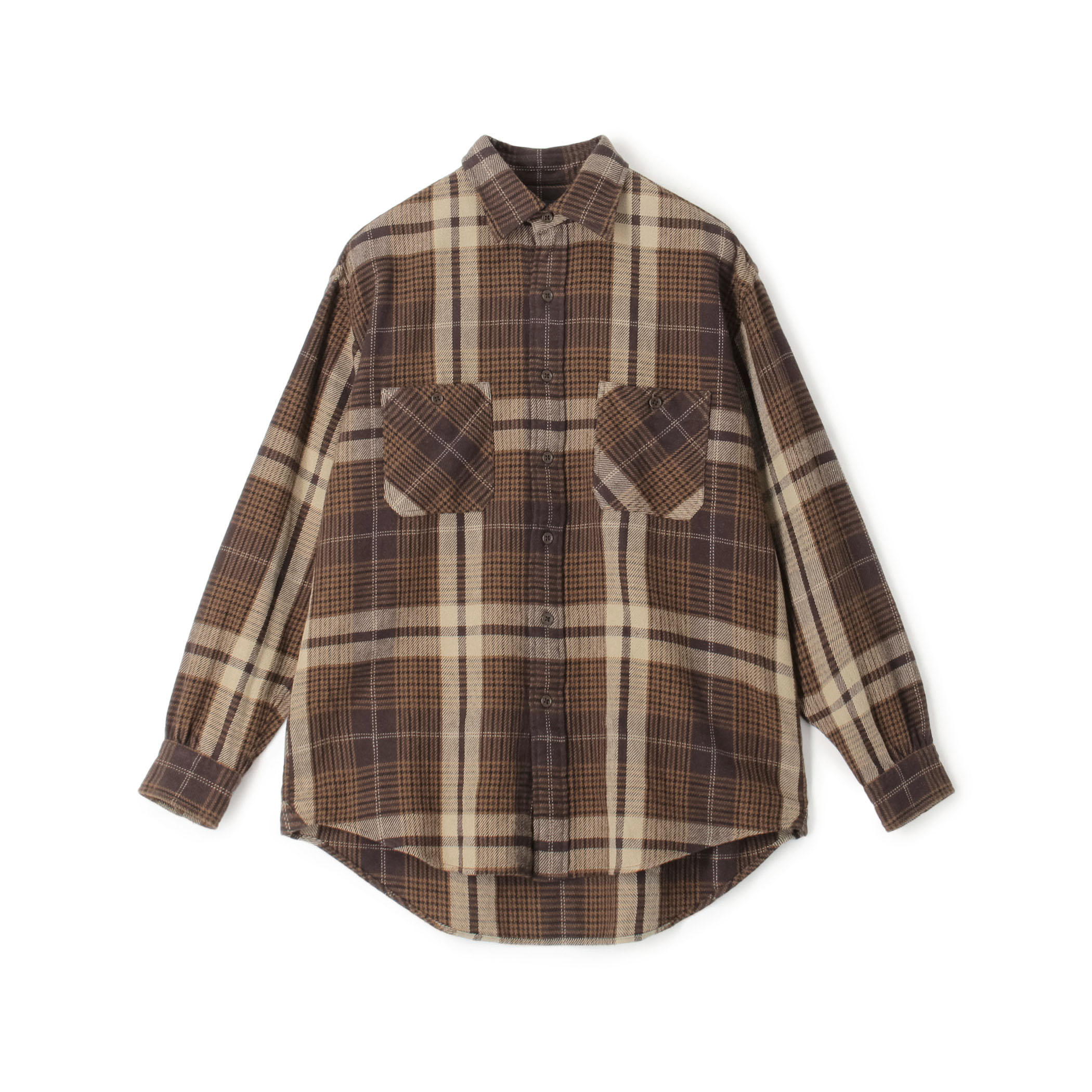 古着のワークシャツをイメージした壁撚り糸使いの膨らみのある風合いが特徴のチェックシャツ。