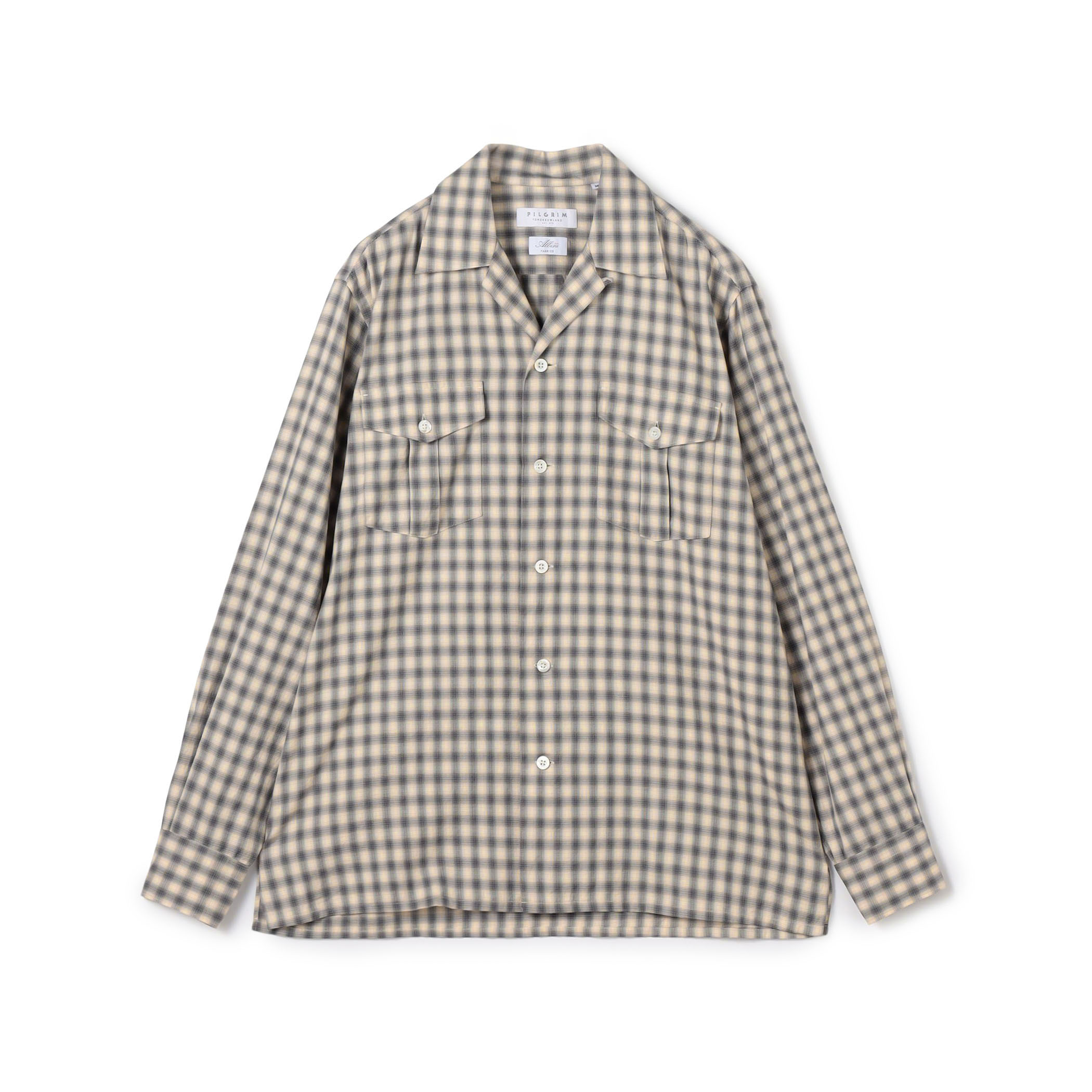 伊〈ALBINI〉社のオンブレ―チェック素材を使用したオープンカラーシャツ。