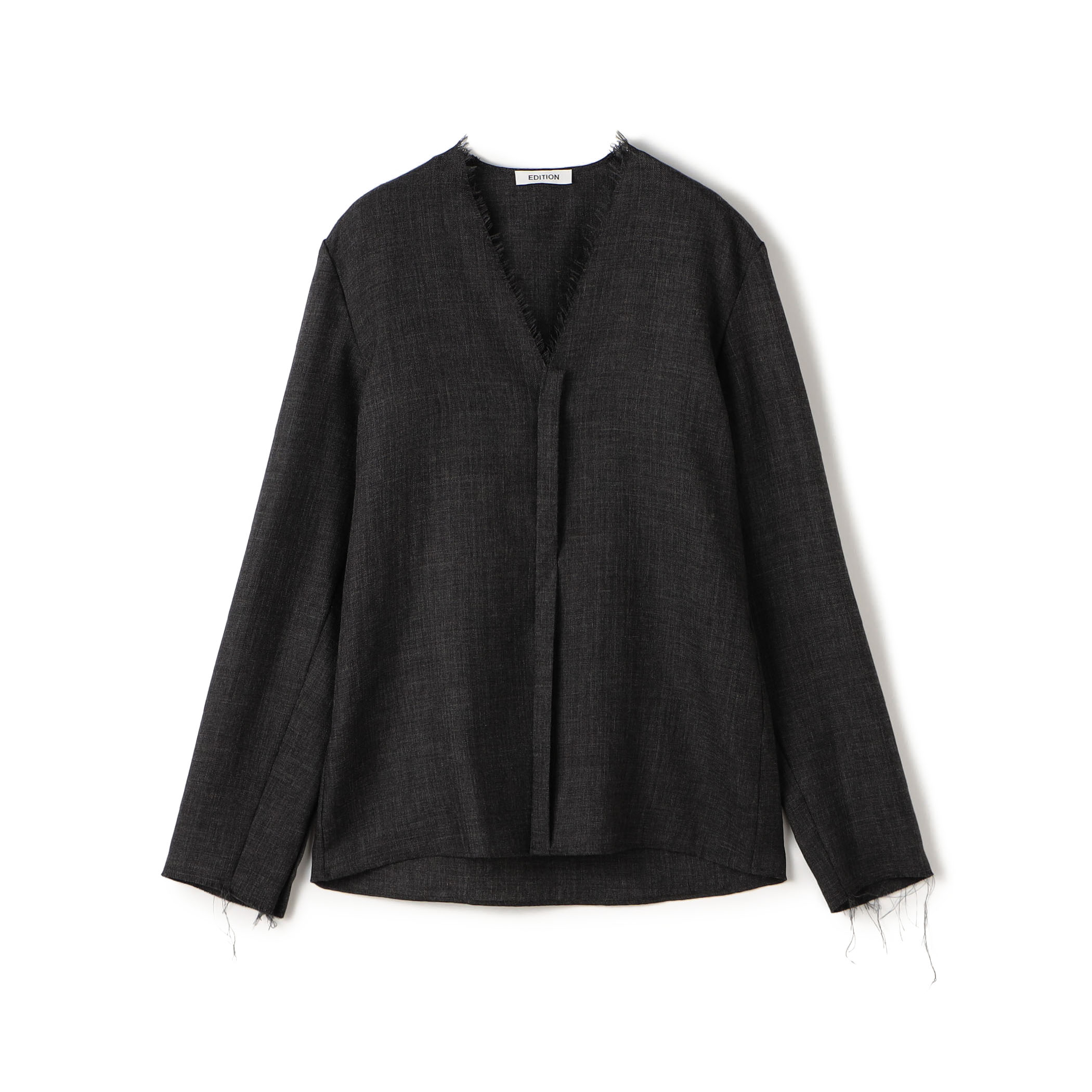 ネックラインや袖口の切りっぱなし仕様が、スタイリングに抜け感をプラス。