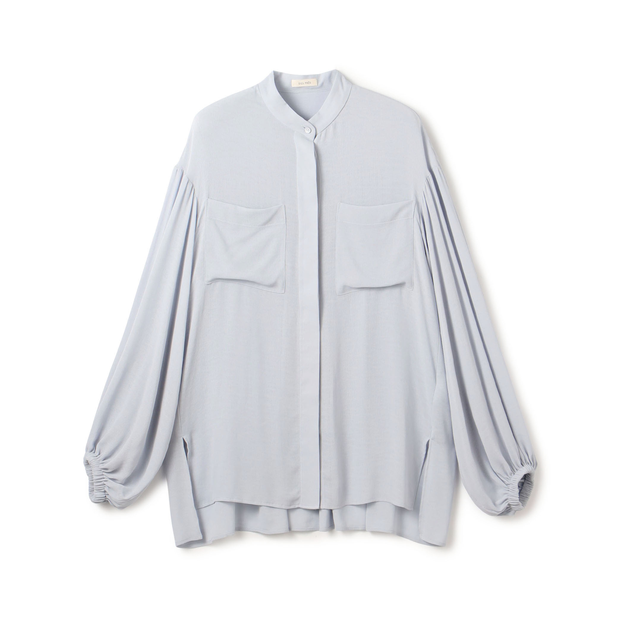 チュニックブラウスにハリ感のあるスカートを合わせて、甘すぎず上品なスタイルにまとめました。