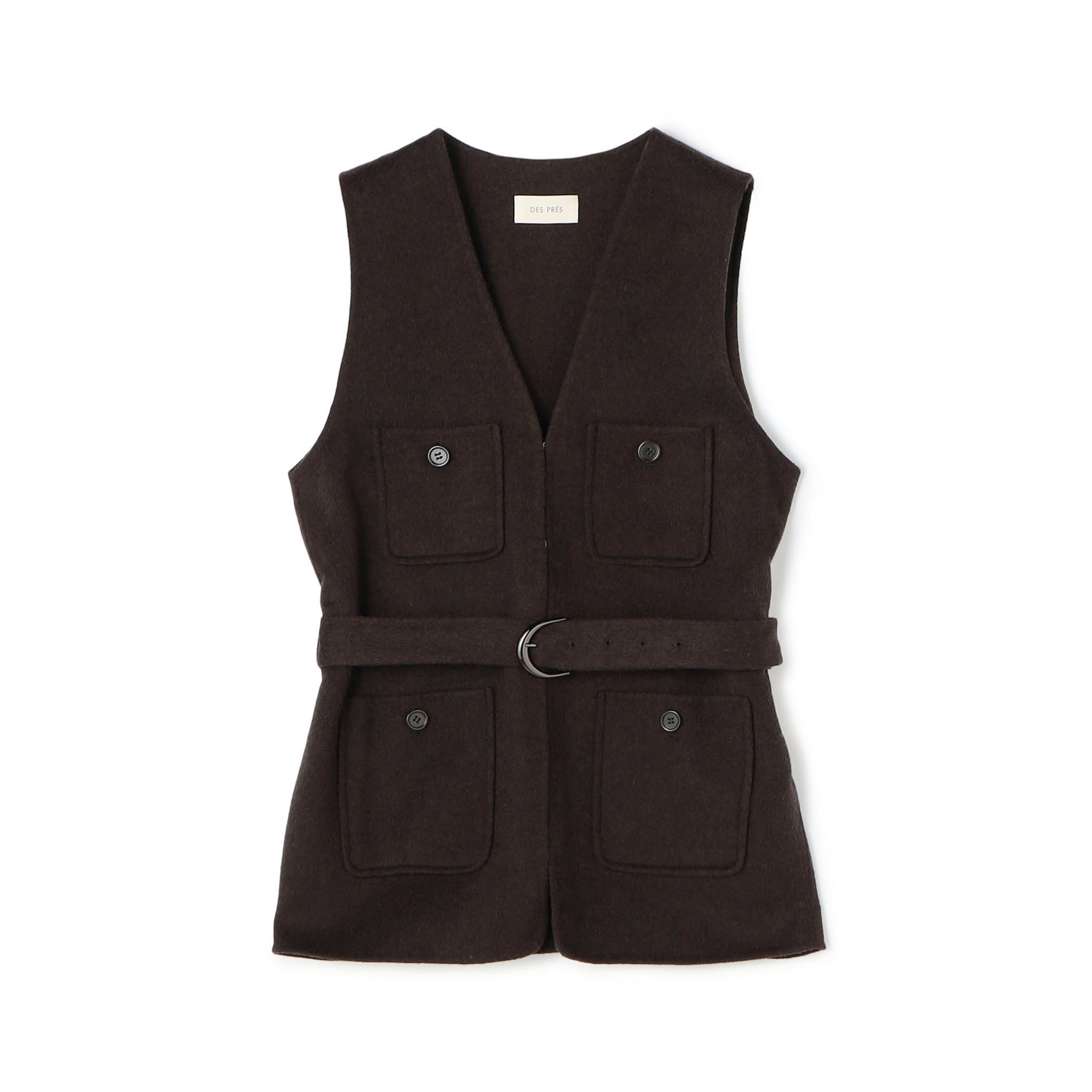 〈DES PRÉS〉ライトダブルフェイスシャギー ベルテッドジレは、ウールの他にカシミヤも使用していることで軽く、暖かみのある着心地です。