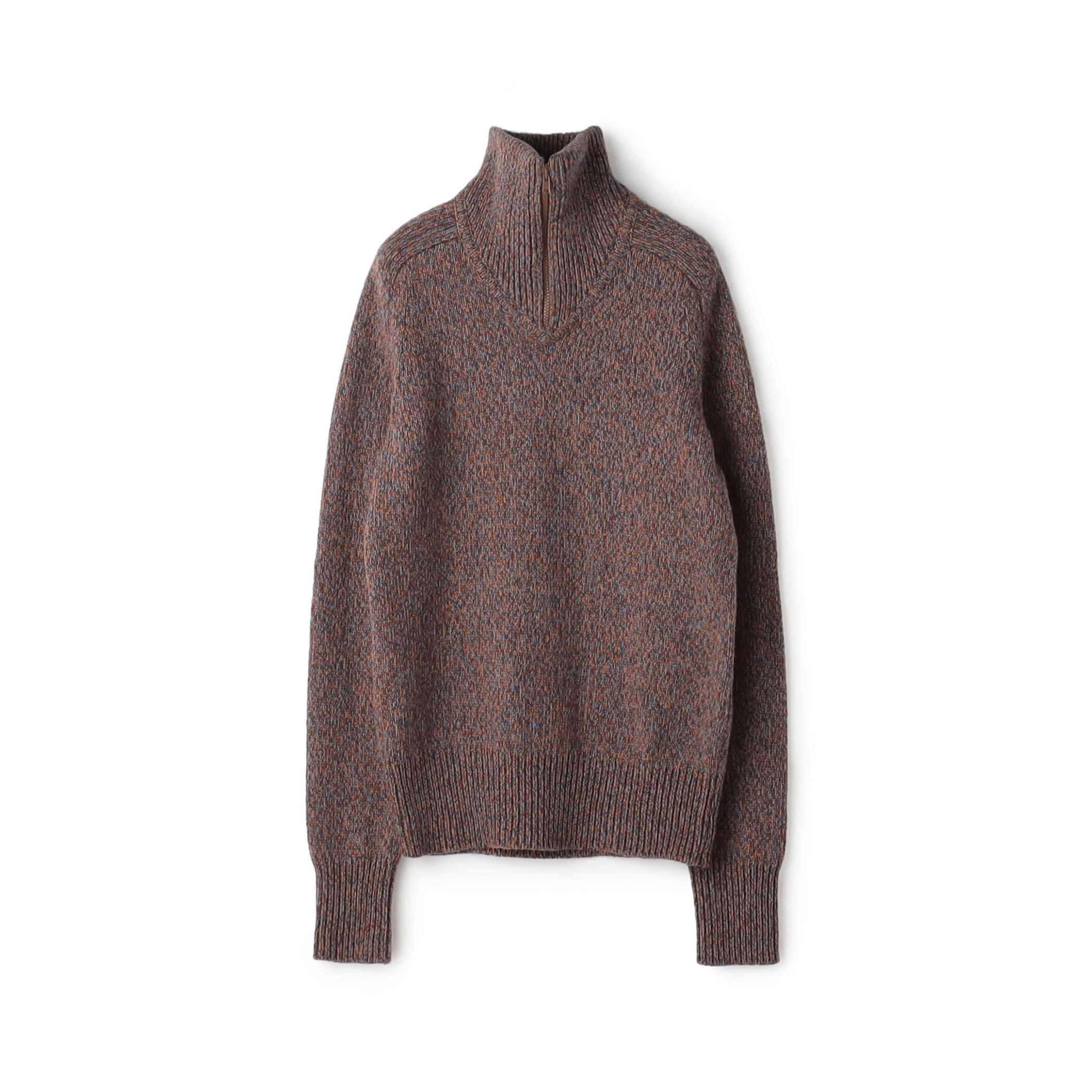 〈BACCA〉のニットはジップを閉め、スタンドにして着用したり開けてニットポロのような形にすることもできます。