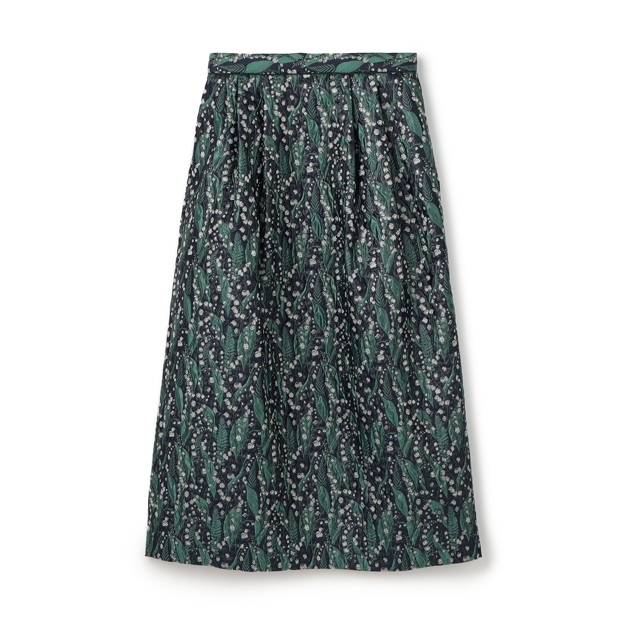 鈴蘭をジャカードで丁寧に織り上げたデザインは、可憐さと清楚さを併せ持ち、スタイリングを品よく引き立ててくれます。