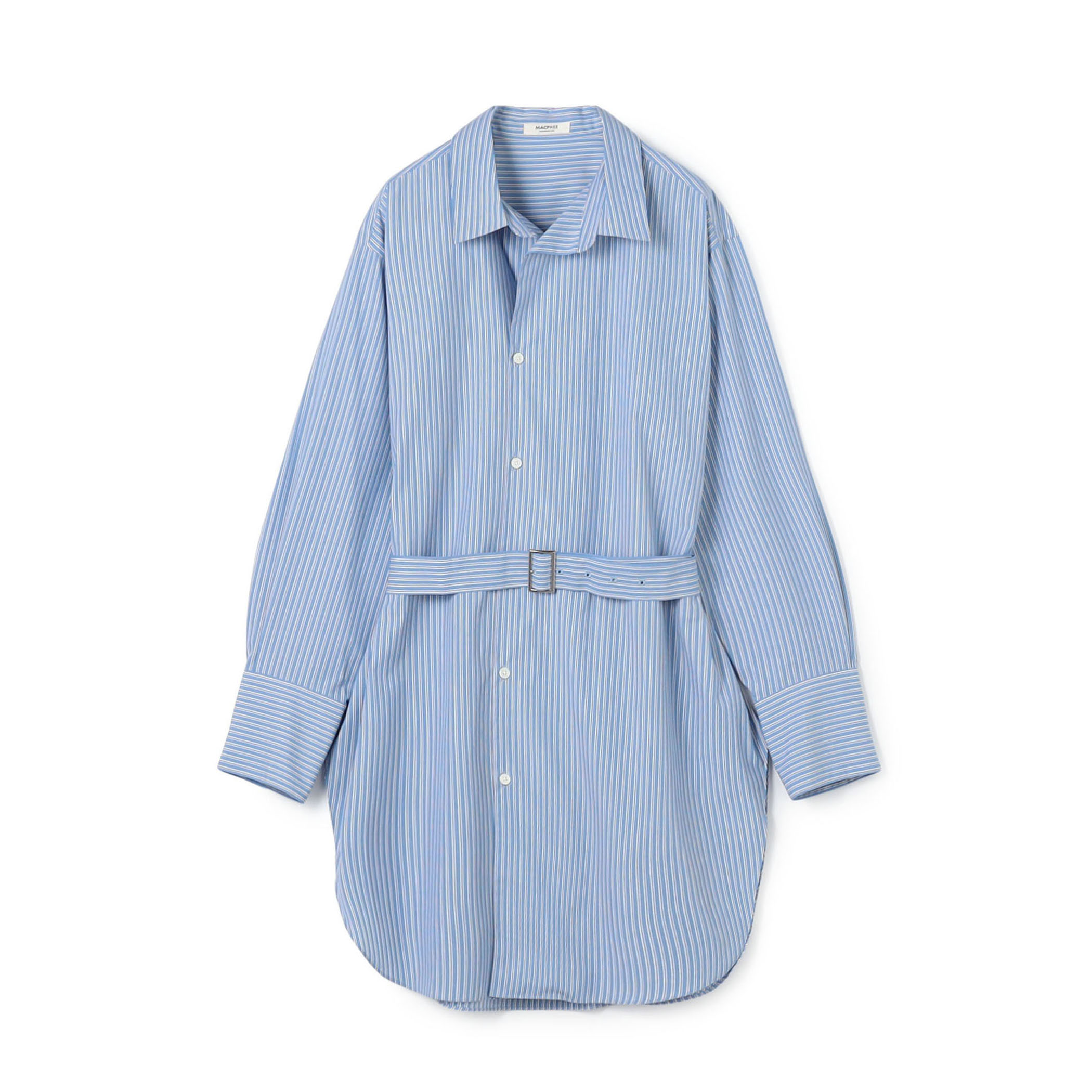 インナーにはブルーのシャツを合わせてカジュアルにまとめつつも、ムートンアウターでラグジュアリーで上品なムードに。