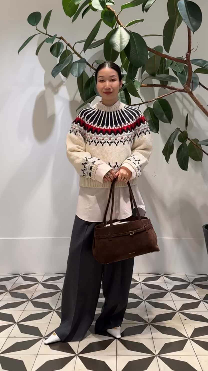 冬のムードをぐっと高めてくれるノルディック柄ニットを主役にした、洗練カジュアルスタイル。