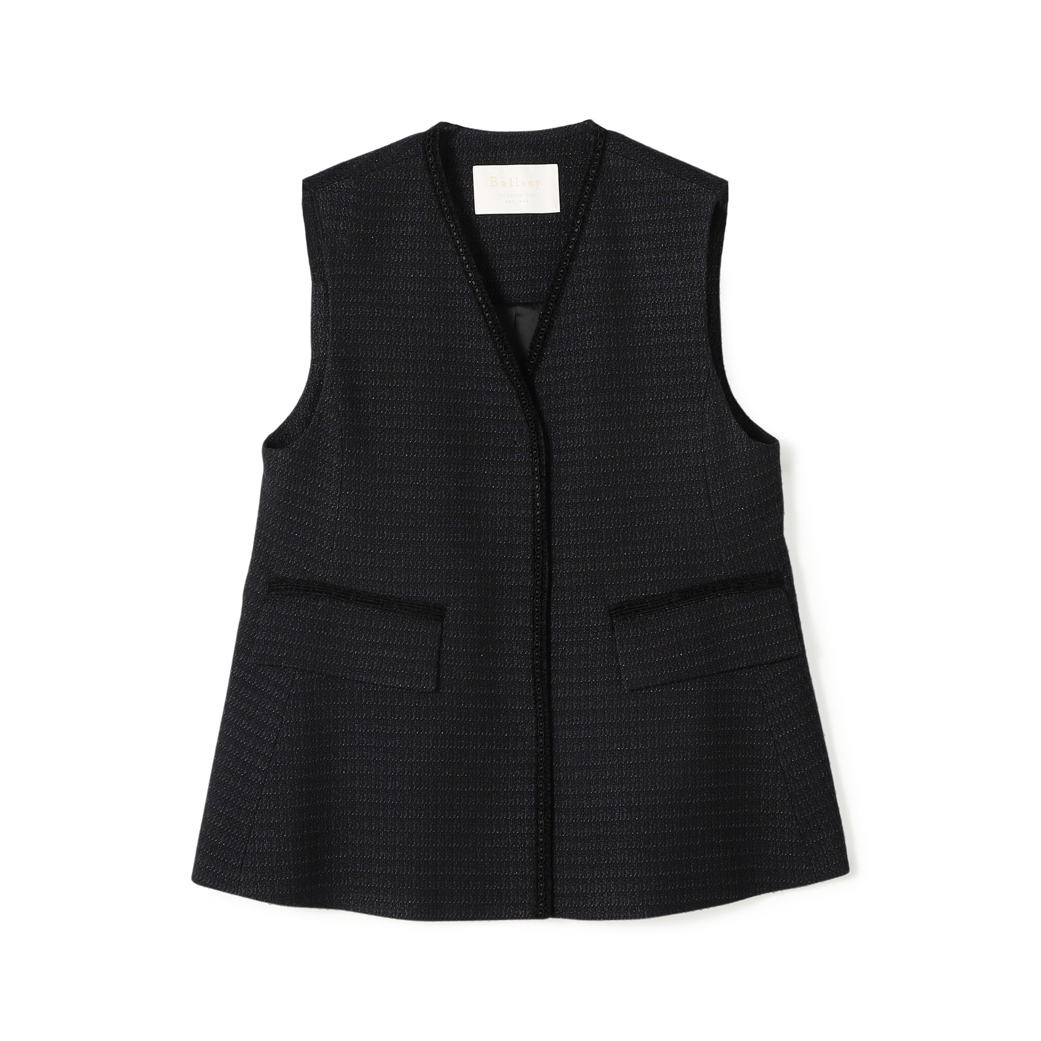 着用のジレは、ペブラムシルエットでウエスト位置が高く見えるバランス。