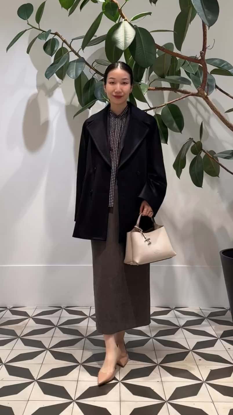 控えめな色合いでまとめることで、オンシーンでも自然に馴染む大人の装いが完成します。