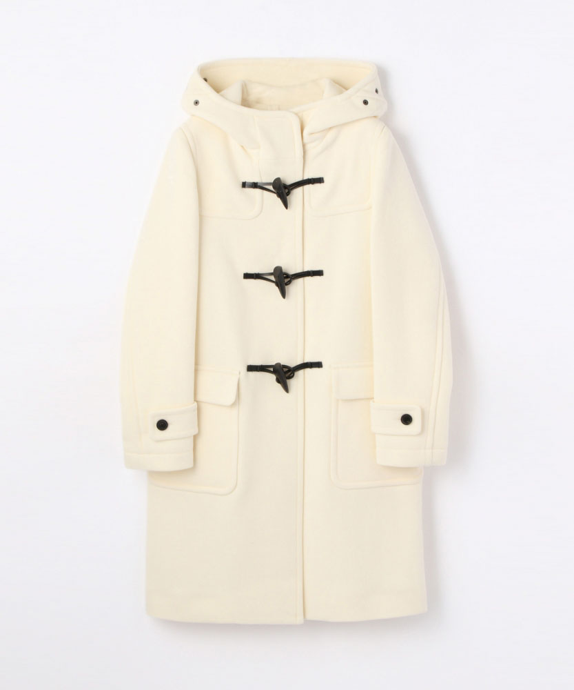ホワイトのダッフルコートをメインに、