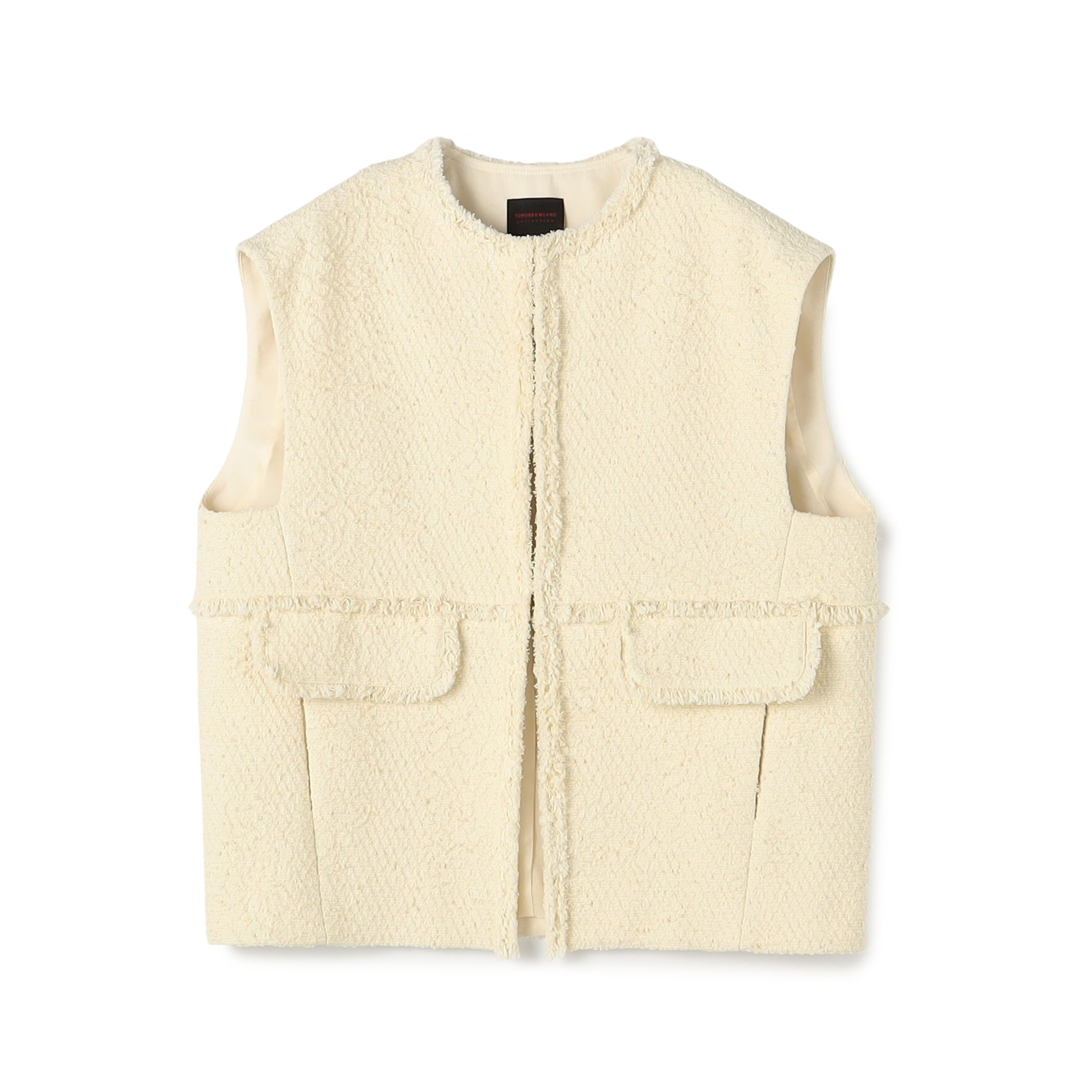 後ろがフワッとシルエットが綺麗に見えるミディアム丈のジレ。デニムと合わせてカジュアルに普段使いにも落とし込みやすい、シンプルで映える一枚です。