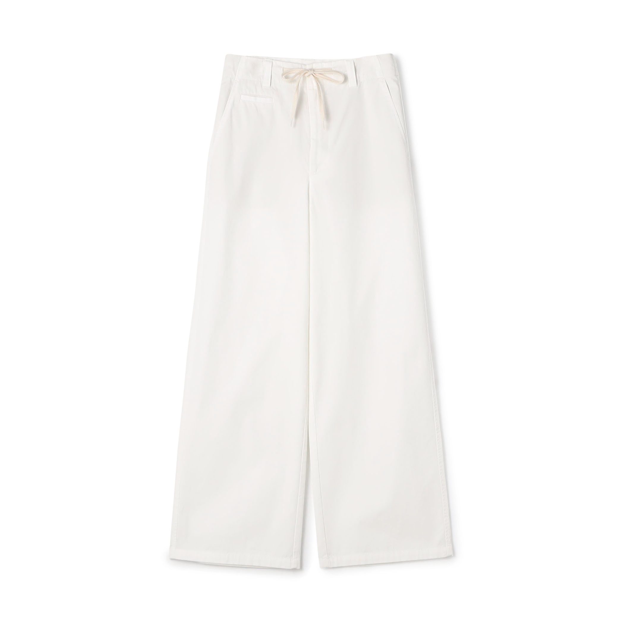 ホワイトとライトベージュのクリーンなスタイリングに、〈Atelier TOMORROWLAND〉のオレンジのスカーフでアクセントをプラス。