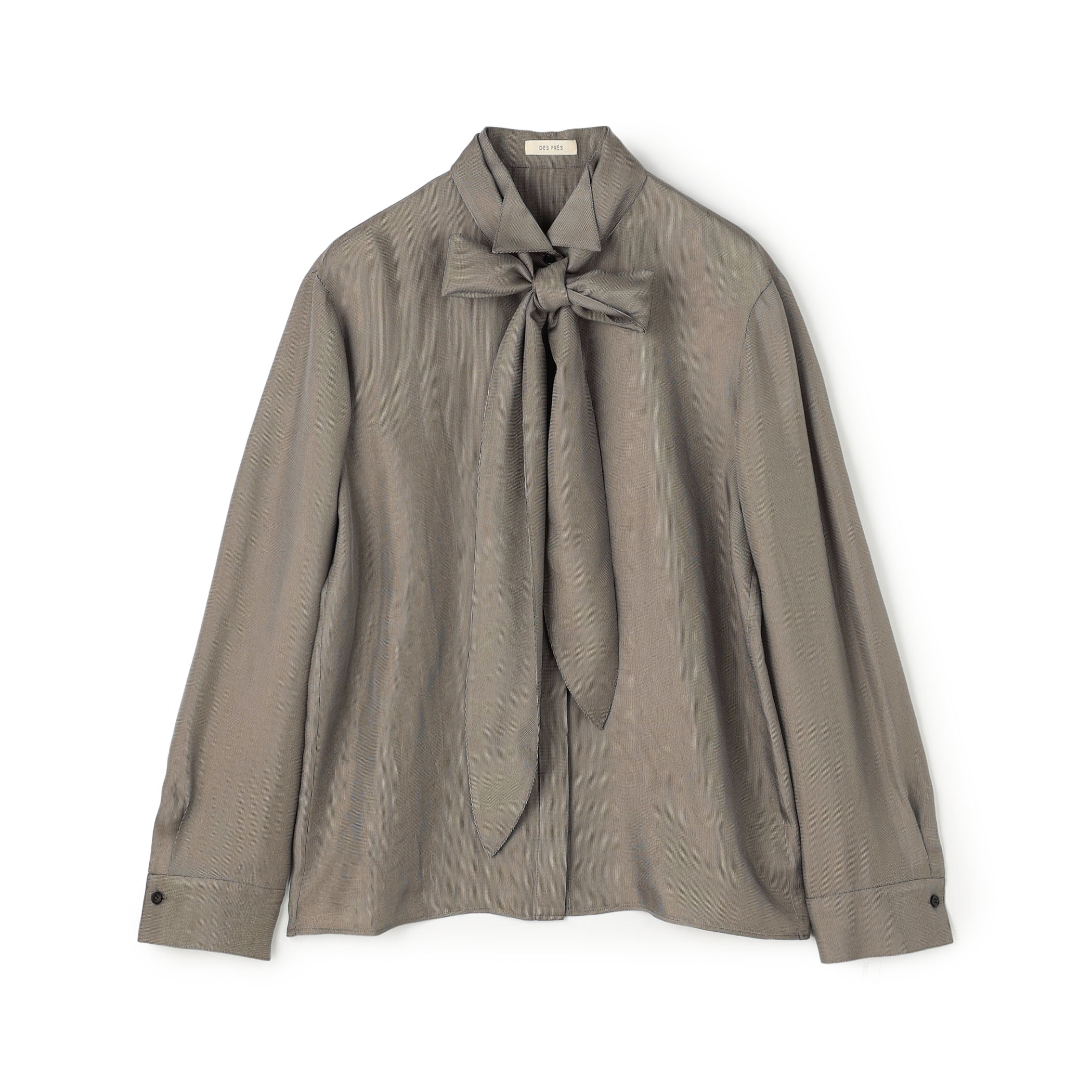 DES PRÉSのボウタイ付きのブラウスは、上品な光沢感とソフトな風合いが魅力的な素材を使用しています。