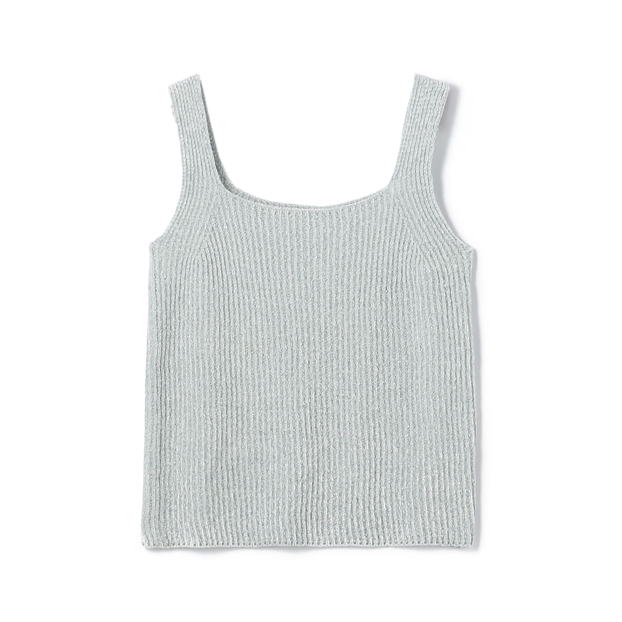 独特の光沢とふっくら感のあるシェニール糸の表情が魅力のニットタンクトップです。