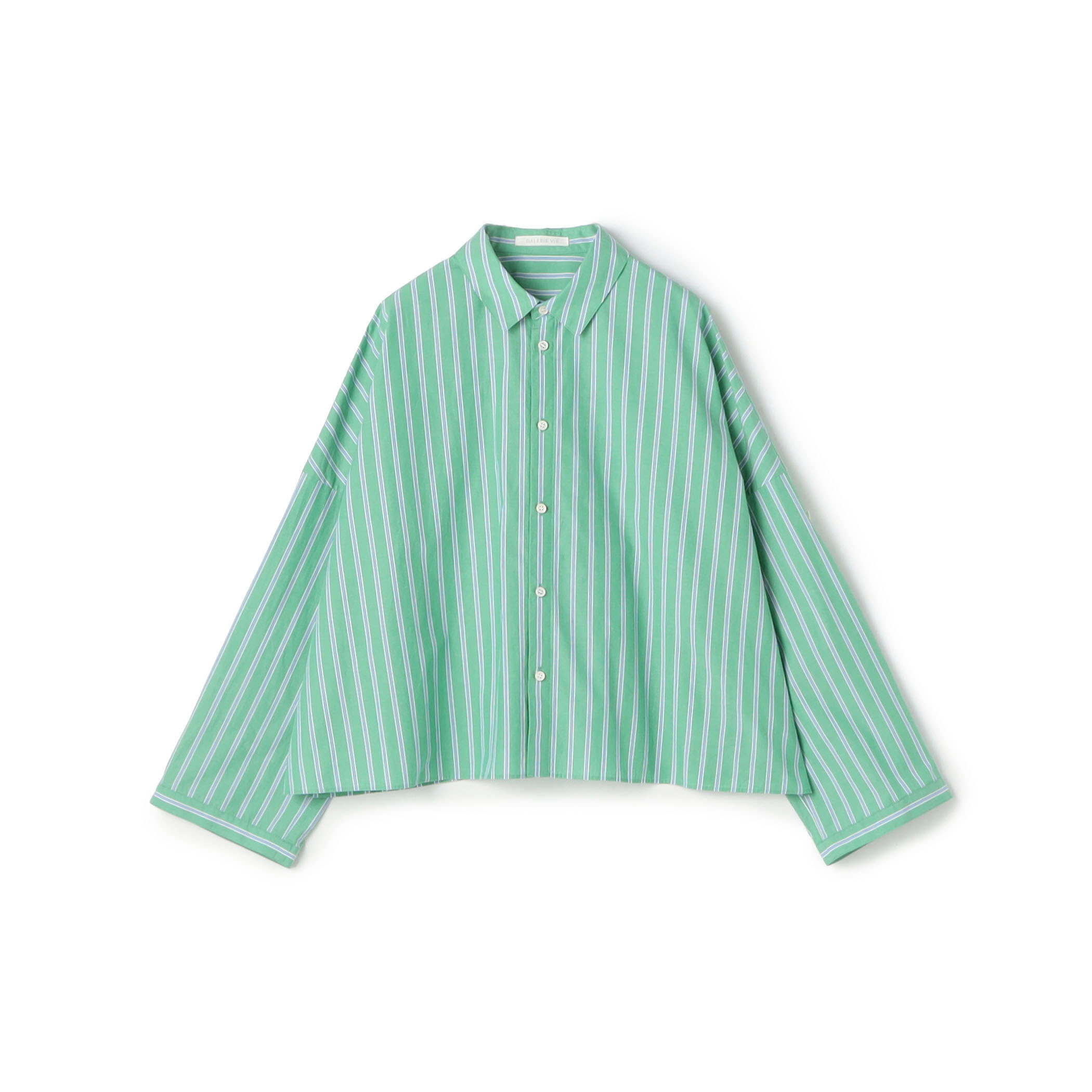 インパクトのあるグリーンのシャツを主役に、他はブラウンと白でまとめました。