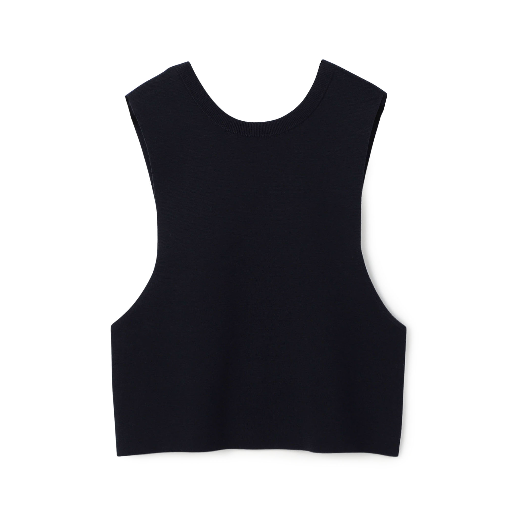 コットンミラノリブシリーズのニットベストは、フロンタブルで着用可能。