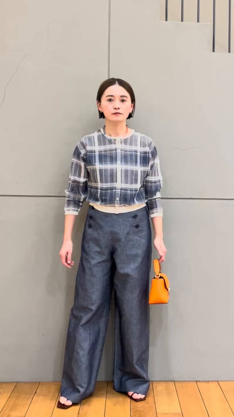カーディガンはトレンド感のあるショート丈でワンピースやボリュームのあるボトムスとも相性抜群の一枚。