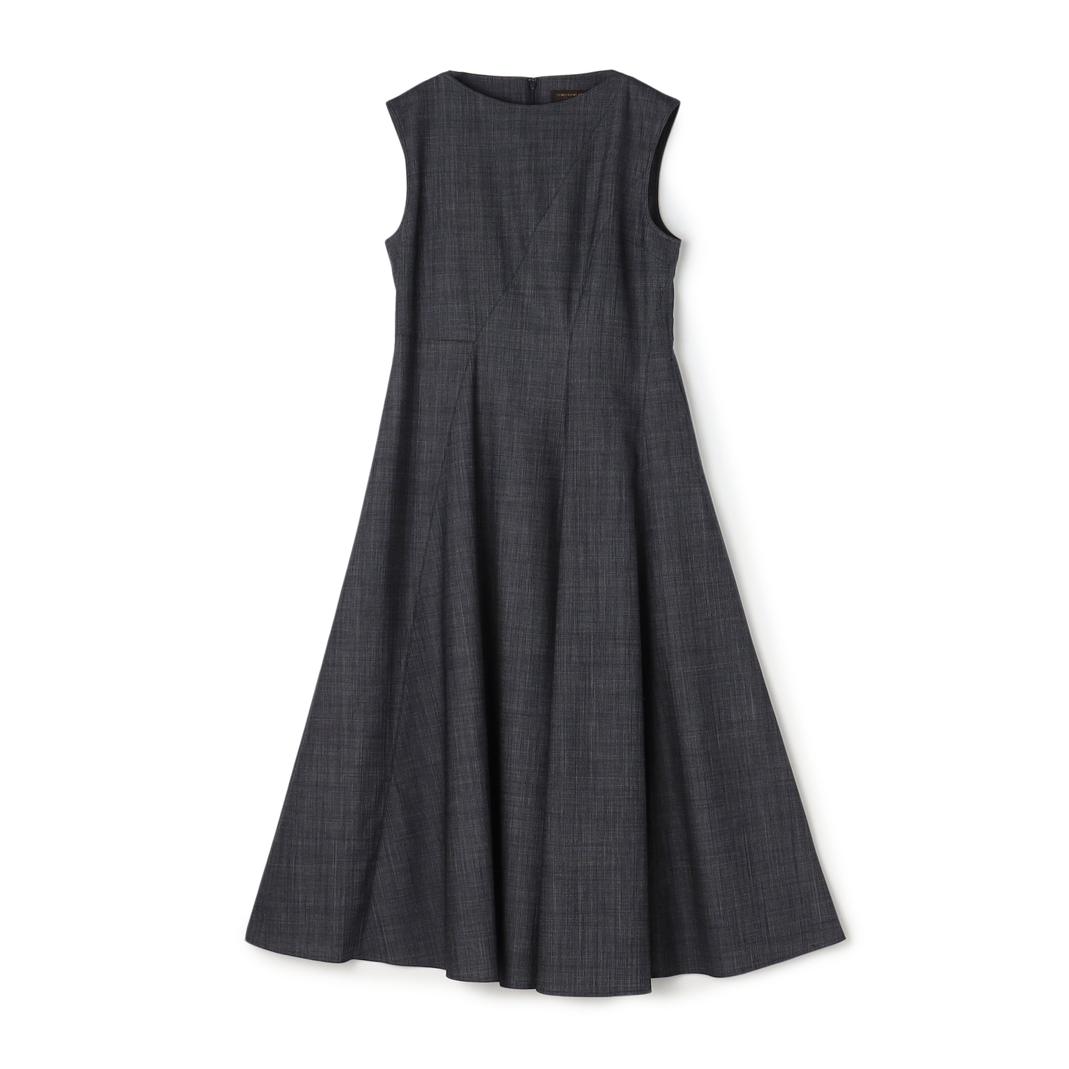 デニム調の素材のワンピースですが切り替えとドレープが綺麗で上品に見えるアイテムです。ジャカードジャケットと合わせて綺麗めなスタイリングにしました。