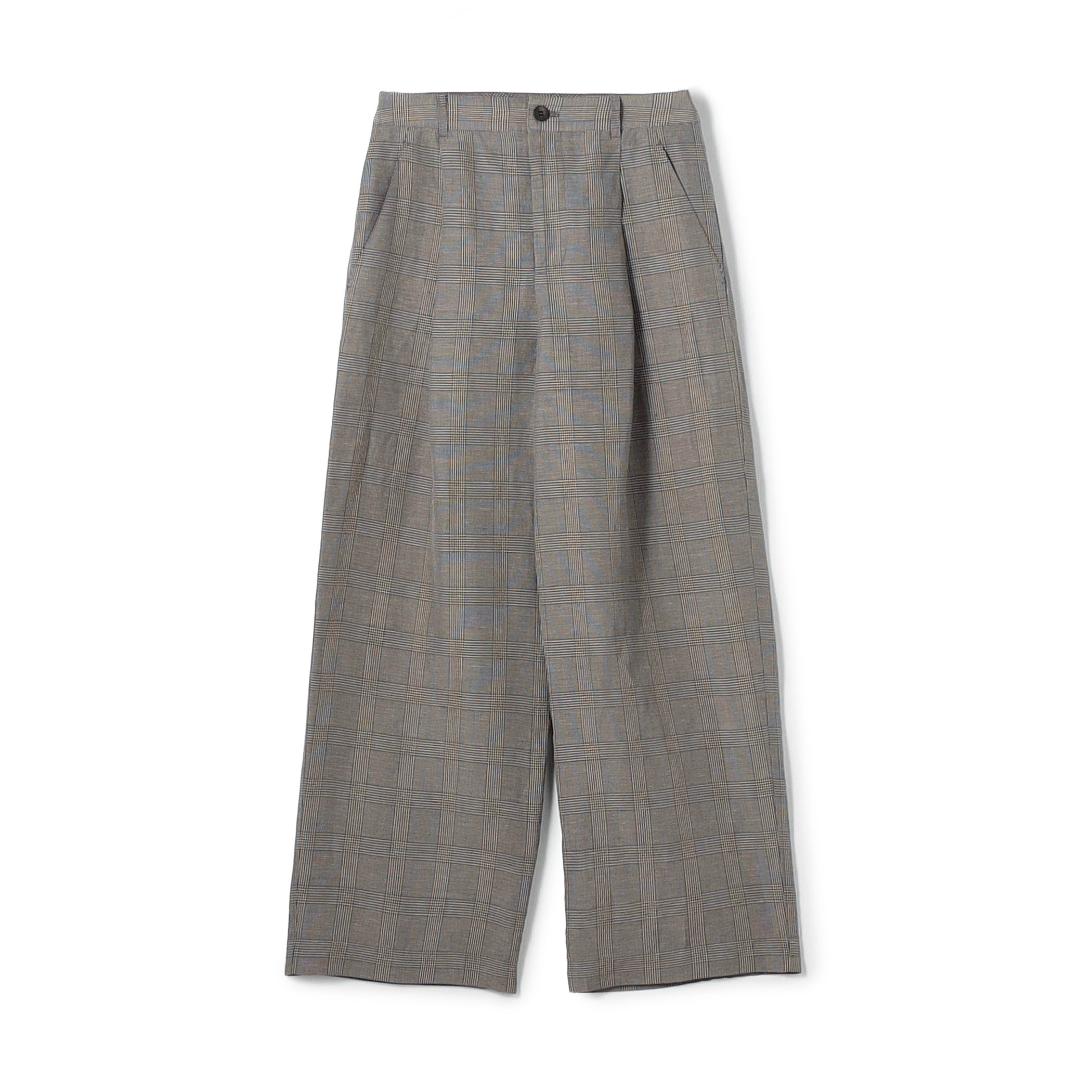 光沢あるリネンパンツと合わせてクリーンな印象にまとめました。