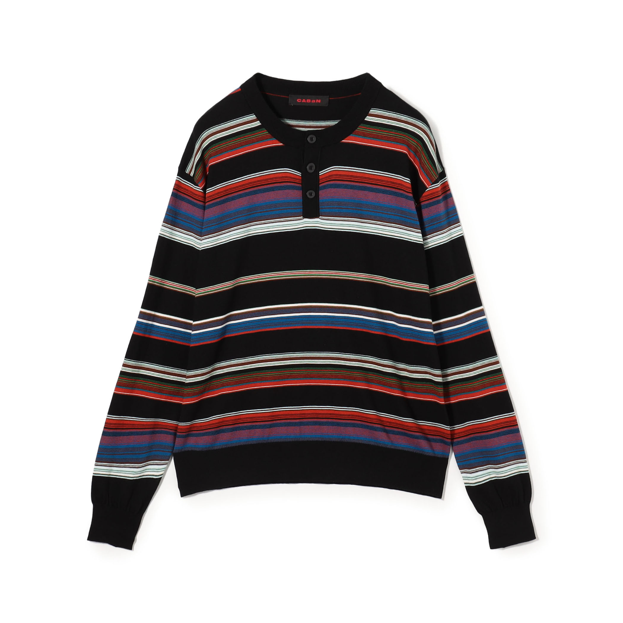 〈CABaN〉のマルチボーダーヘンリーネックプルオーバーは色味がとても綺麗な一着。