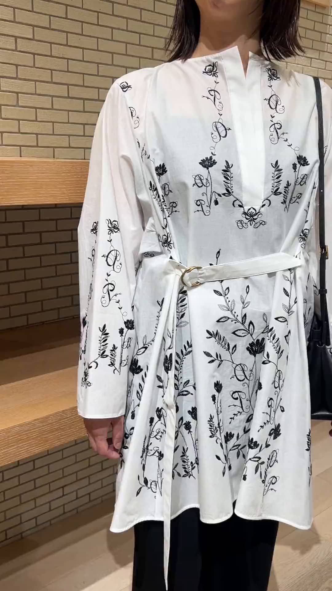 DES PRÉSのチュニックは、手書きボタニカルなモチーフの中に〈DES PRÉS〉のイニシャルをさりげなく入れ込んでいます。