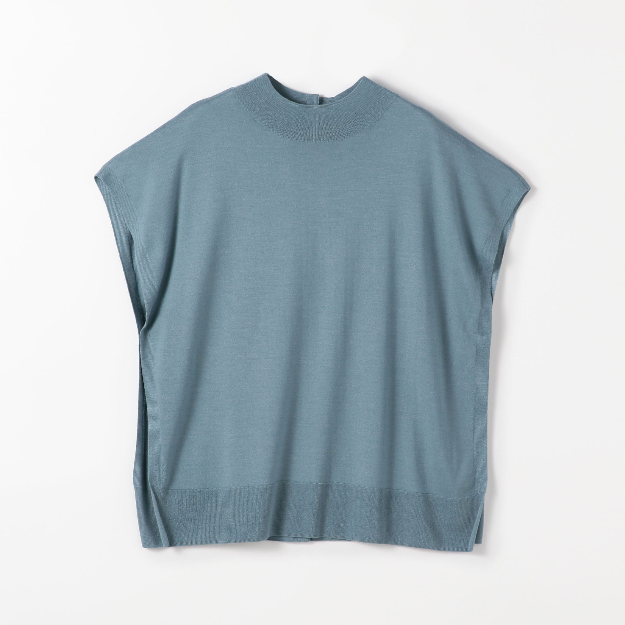 カシミヤシルクのニットをレイヤードして、全体をトーンでまとめたスタイルに。