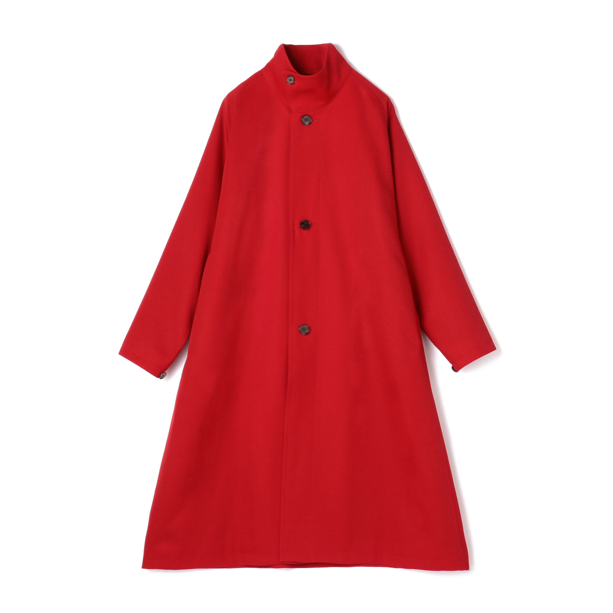〈CABaN〉の定番ギャバジンウールコート。インポート生地ならではの発色の良さが魅力の一枚です。ベーシックカラーの多いコートですが、赤でワンランクアップしたコートスタイリングはいかがですか。