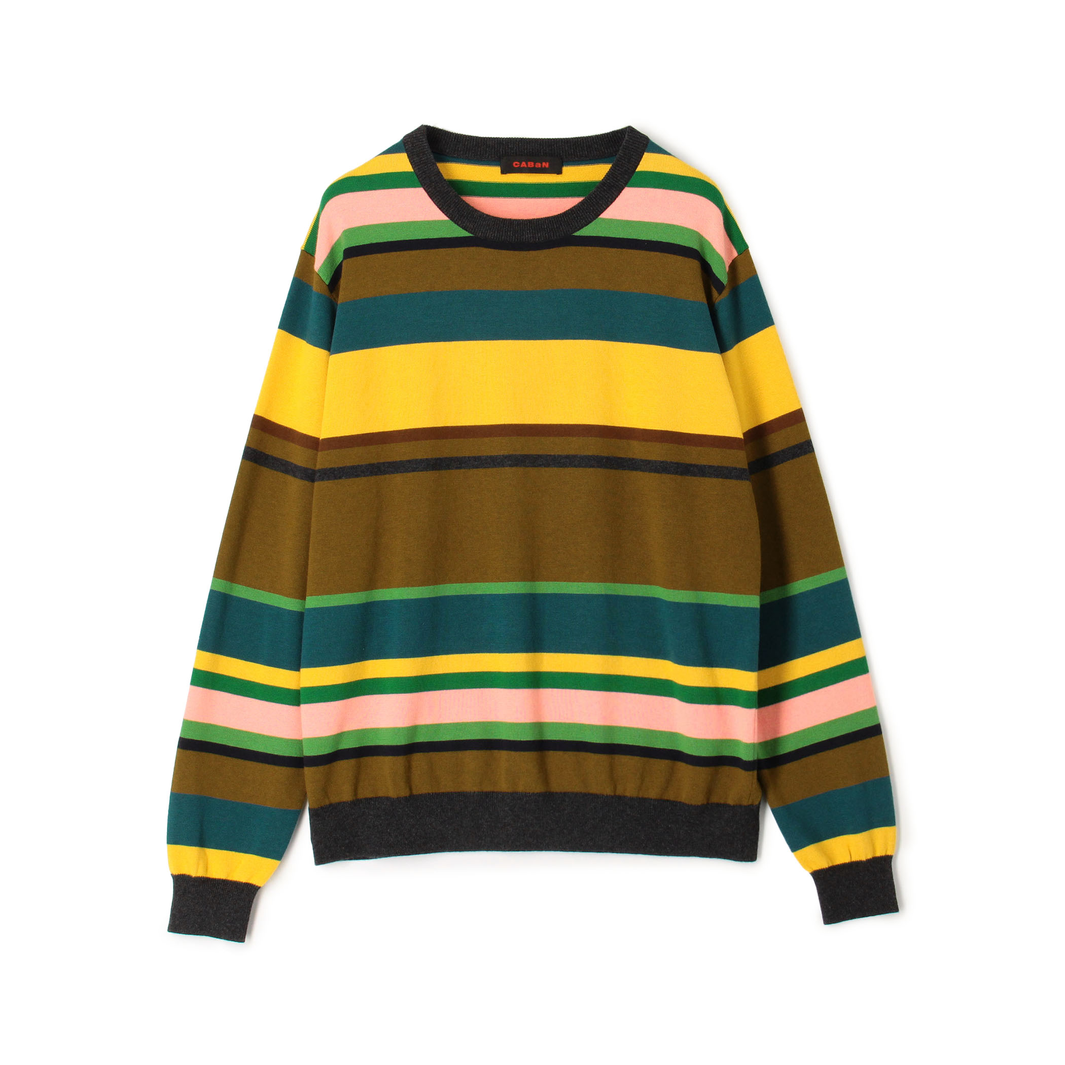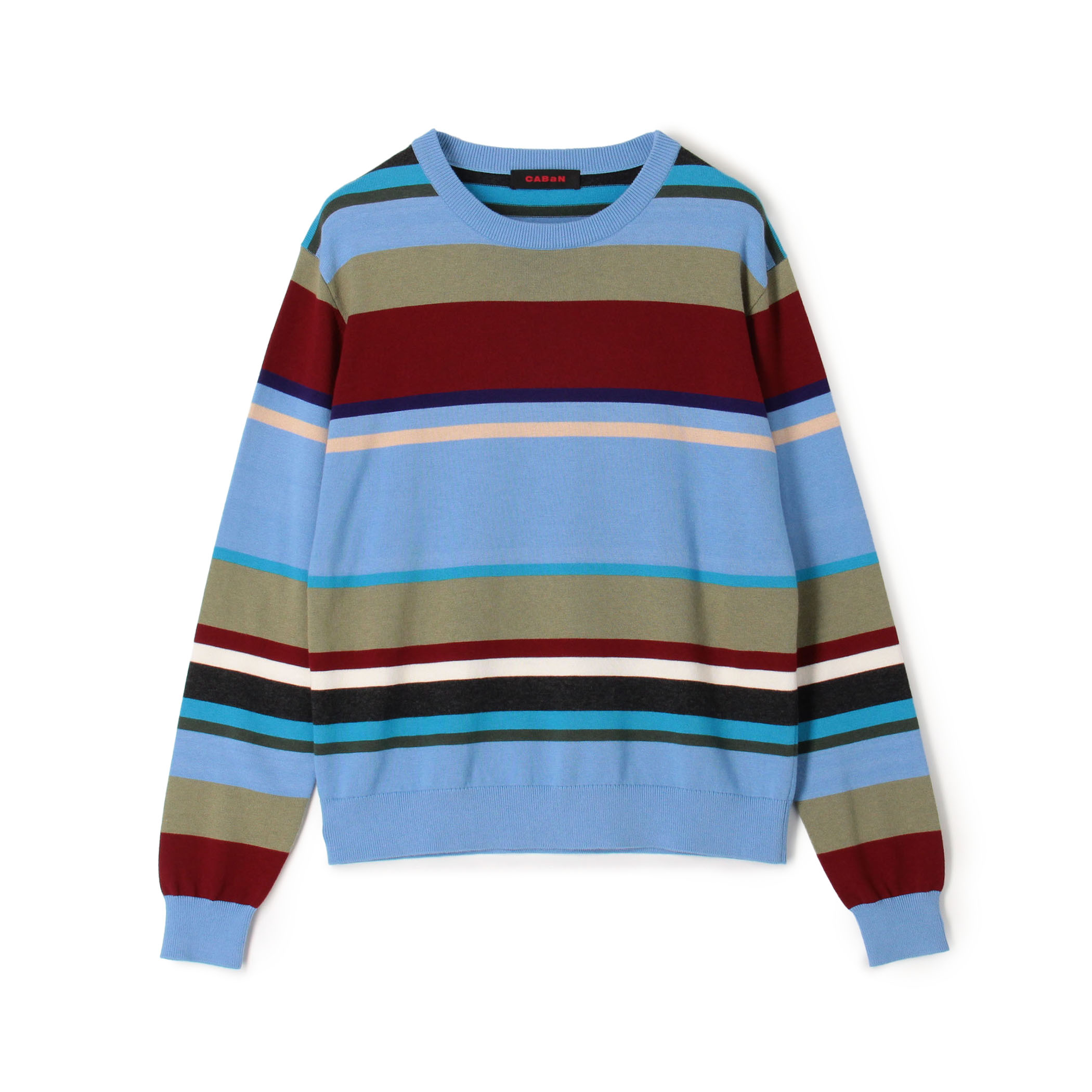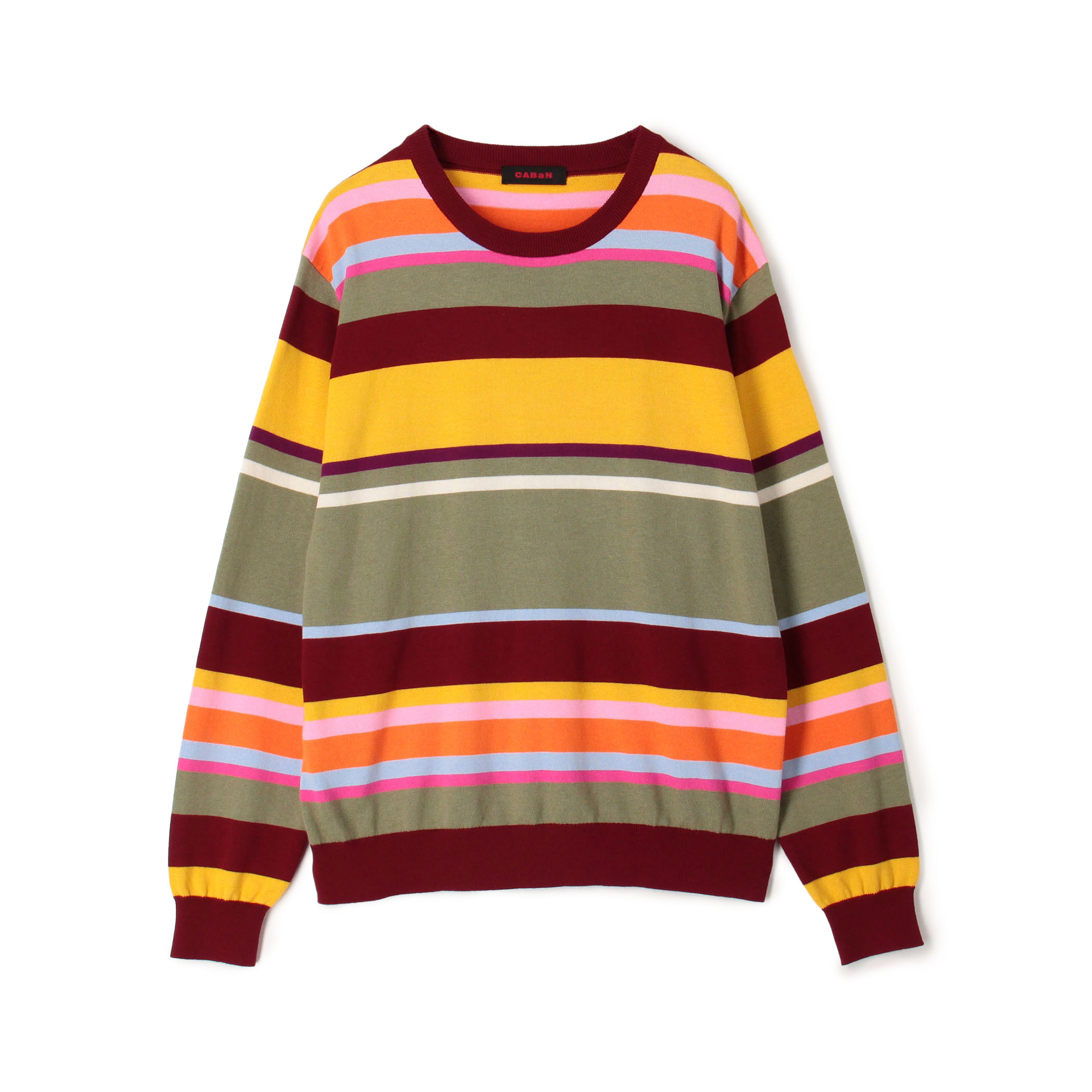 CABaN コットンカシミヤ マルチボーダークルーネックプルオーバー
