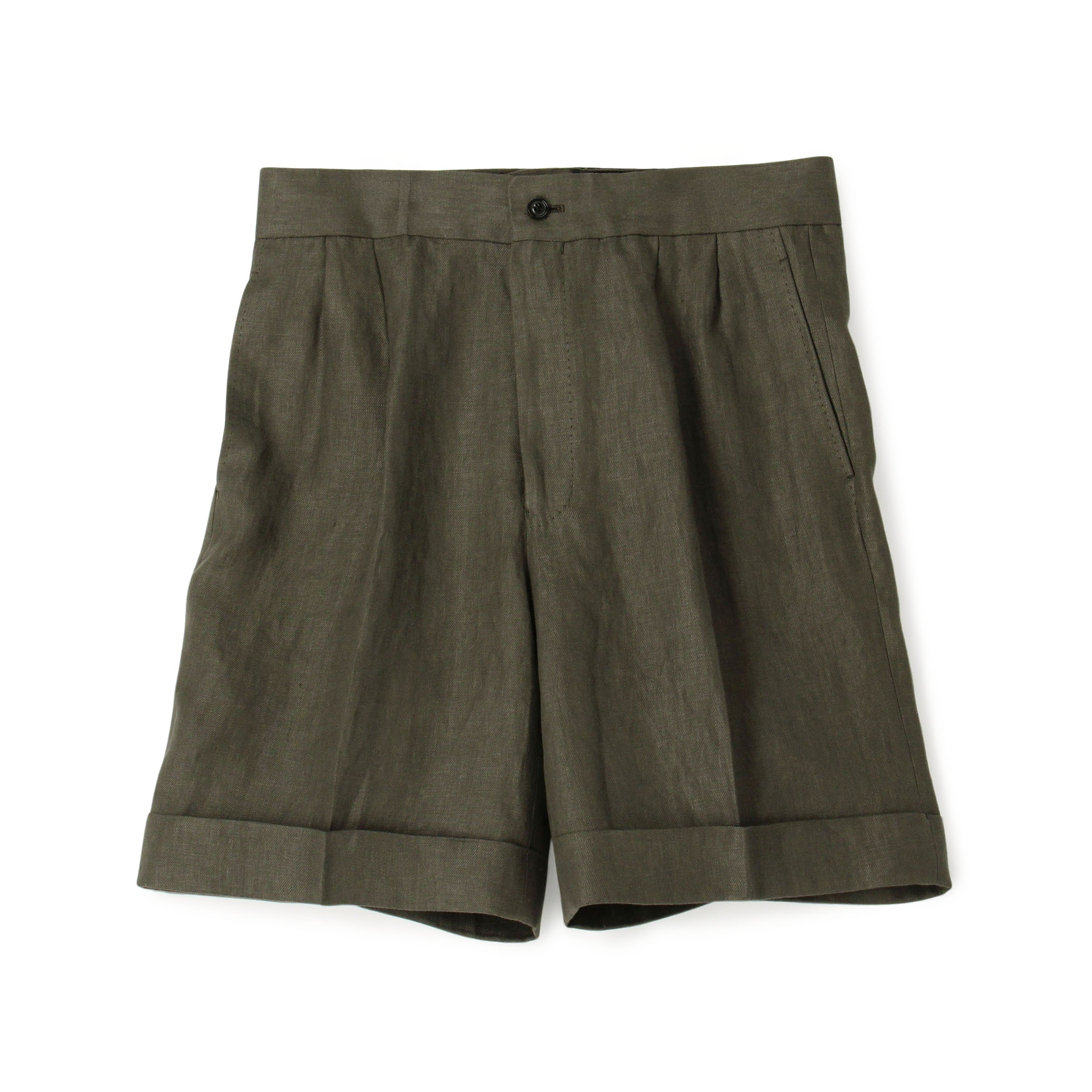 コットンナイロンストライプ 2プリーツ ベルトレス ショートパンツ